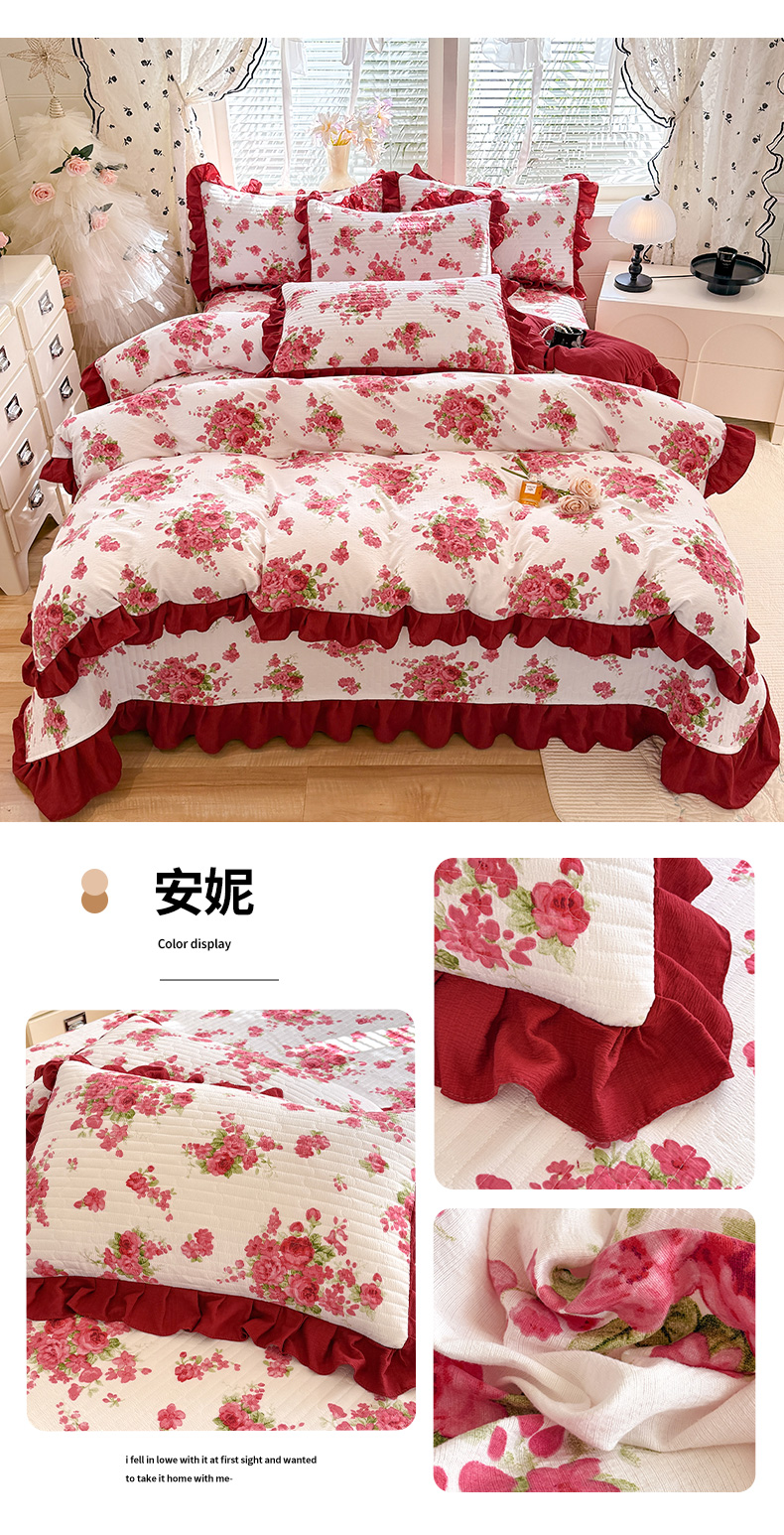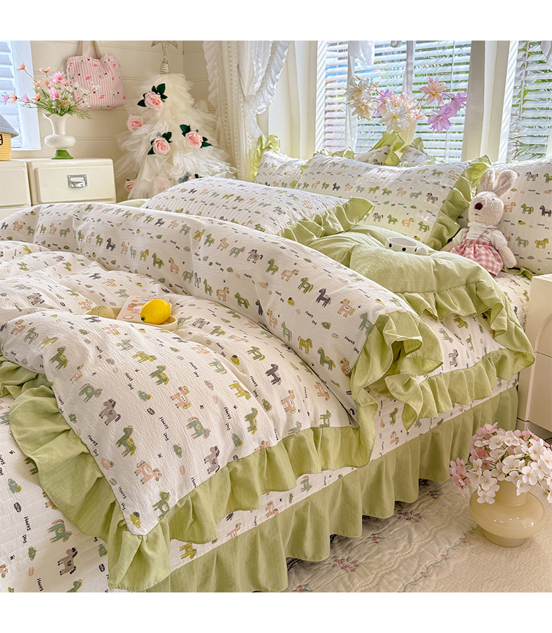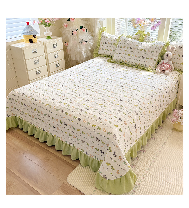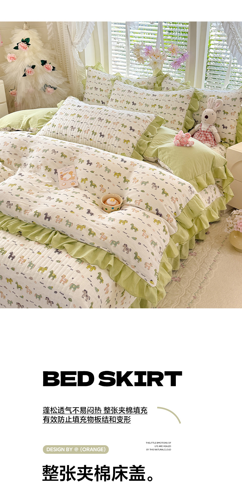 当前位置: 91家纺网 > 商品网购 > 床品套件 > 四件套 > 水洗棉四件套 > 唐人居 2026春夏新款皱皱水洗棉花边床盖四件套 幸运小马