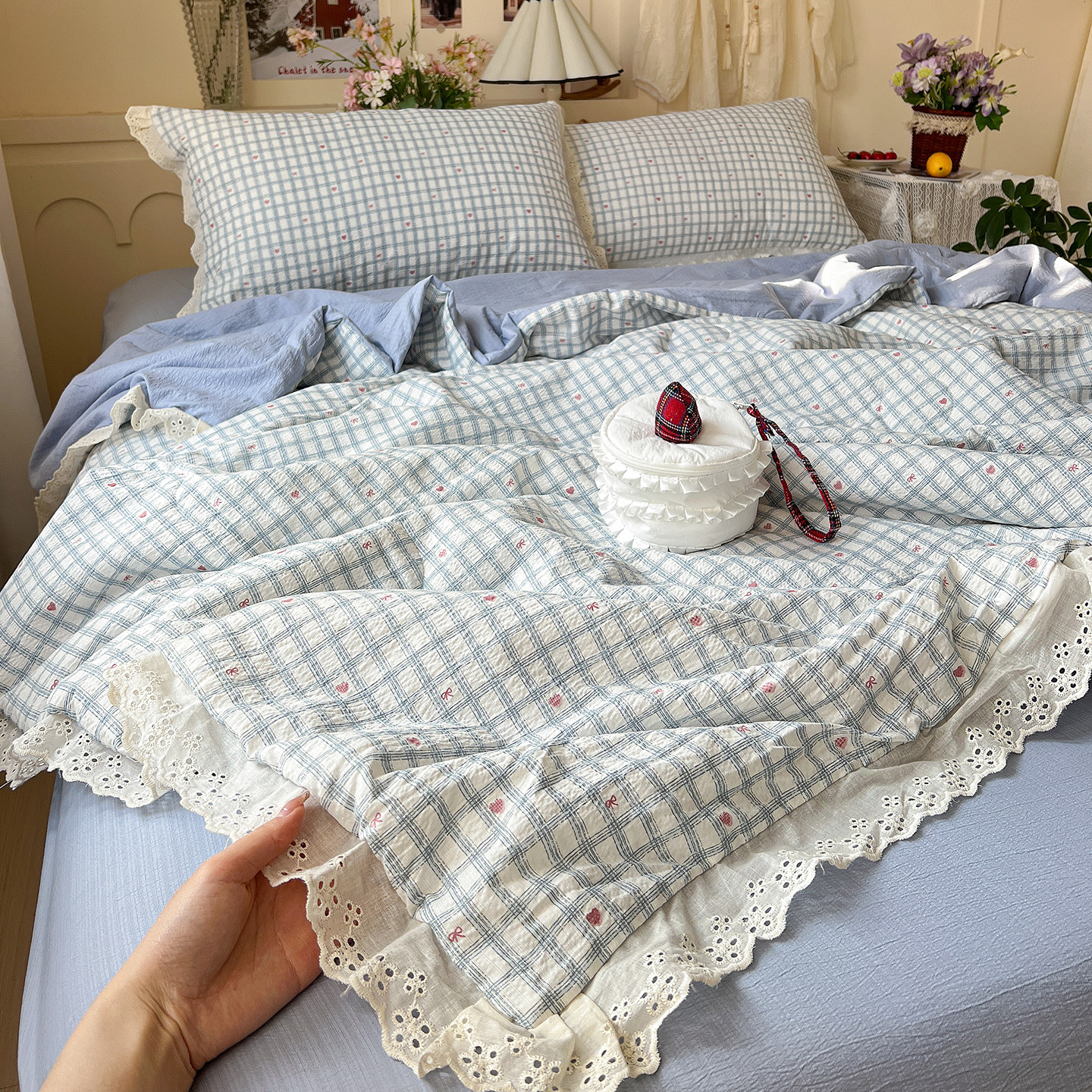 一比一家纺 2026新款彩色花边木棉皱皱纱夏被四件套 邂逅