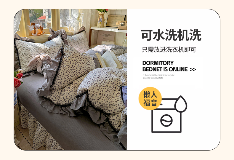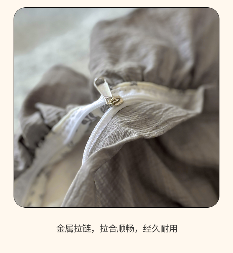 商品名称:芭比蔓家纺 2026春夏新款皱皱纱印花四件套 春雨情丝