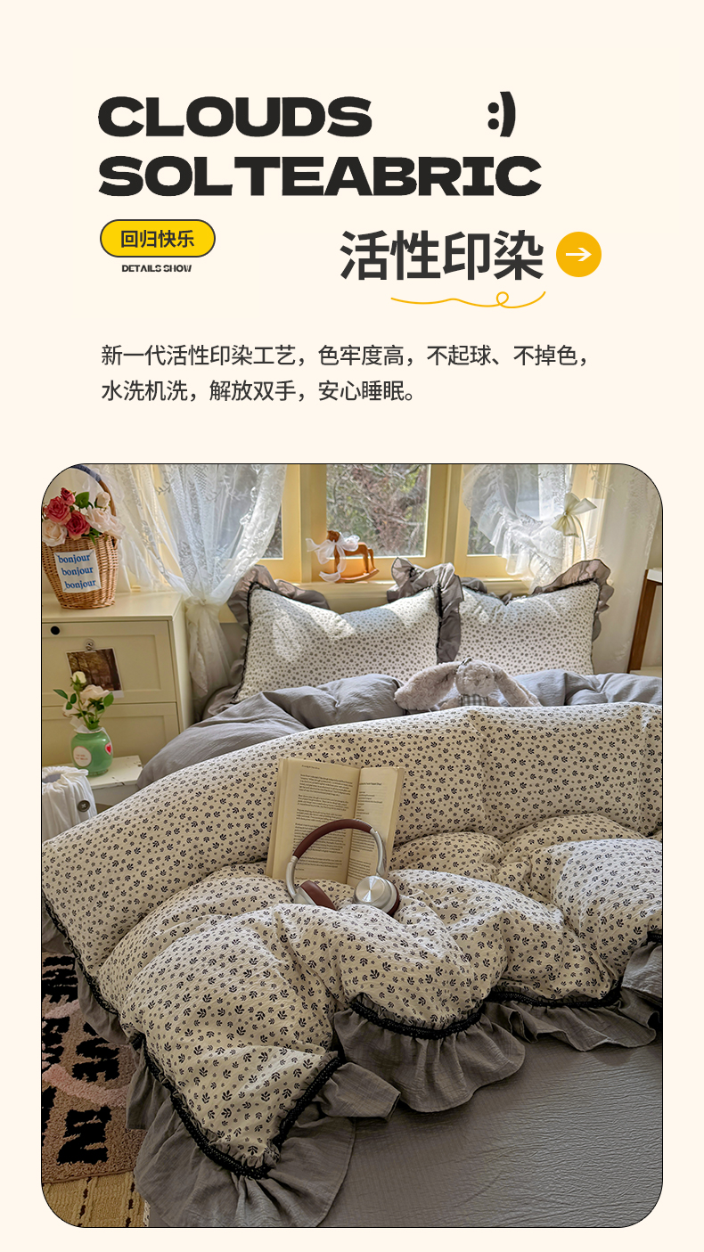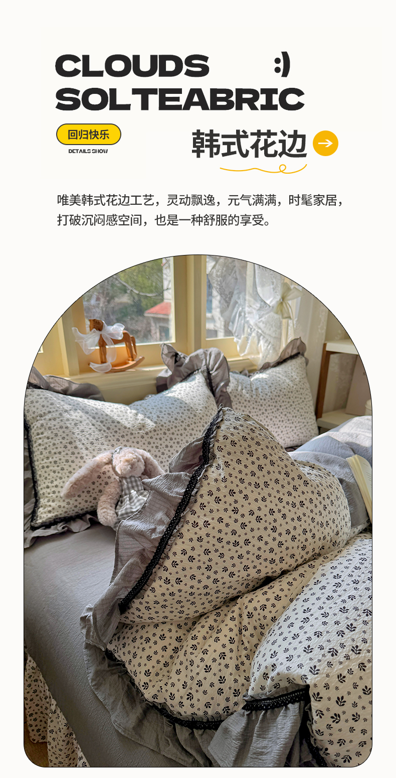 (总)芭比蔓家纺 2026春夏新款皱皱纱印花四件套,春雨情丝,花海迷情,花开满满,花月佳期,浪漫花语,恋夏,陌上花颜,柔情细语,甜蜜蜜,云梦