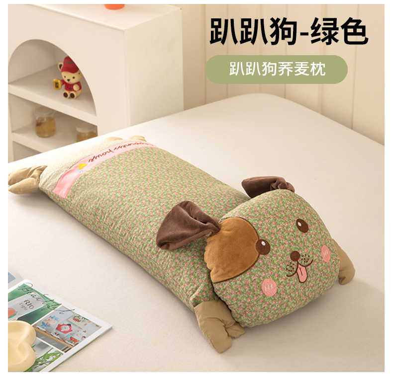 商品名称:枕之坊 2026新款趴趴狗荞麦枕枕头枕芯 趴趴狗-绿色