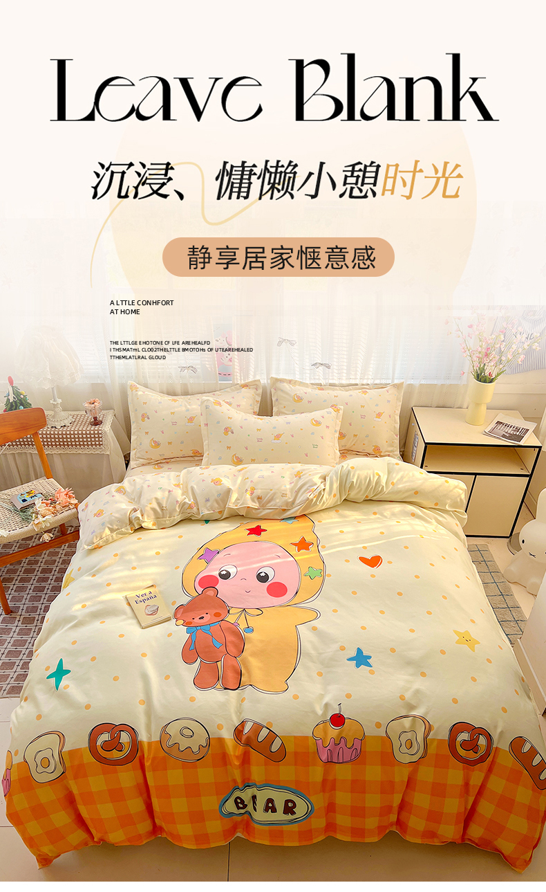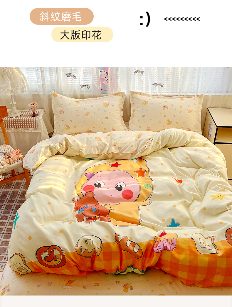 当前位置: 91家纺网 > 商品网购 > 床品套件 > 四件套 > 磨毛活性四件套 > KT猫直营店 2026新款卡通斜纹磨毛大版四件套 星仔面包铺