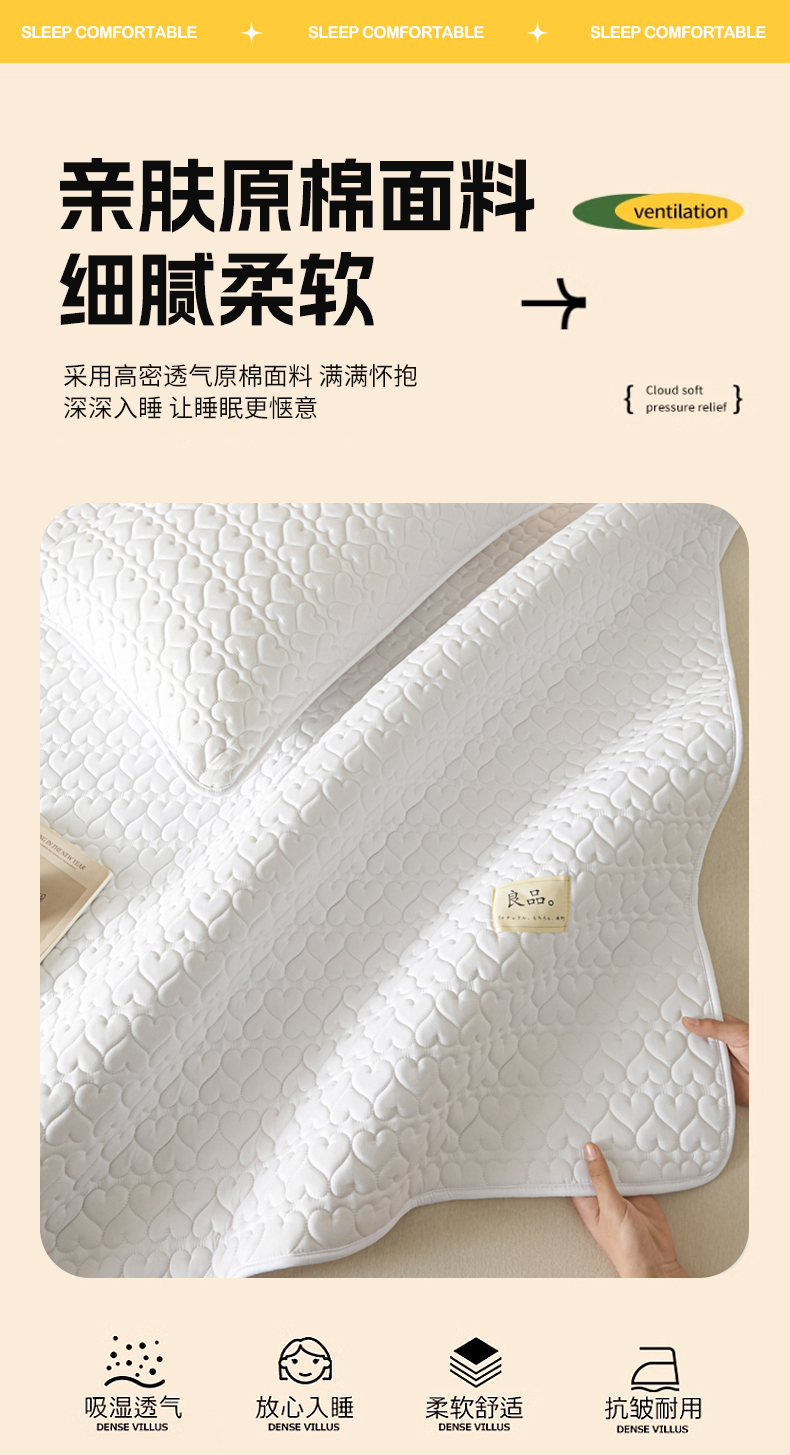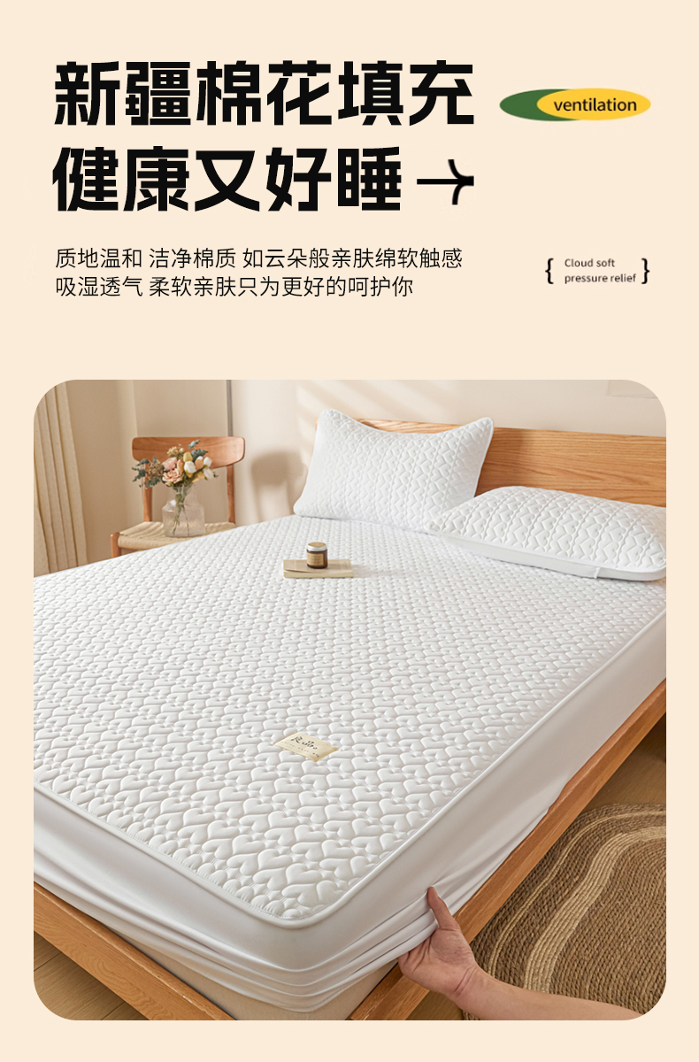 商品名称:曼陀罗 2026新款A类母婴级新疆棉花夹棉防水单床笠 床笠单件-倾心 倾心-本白