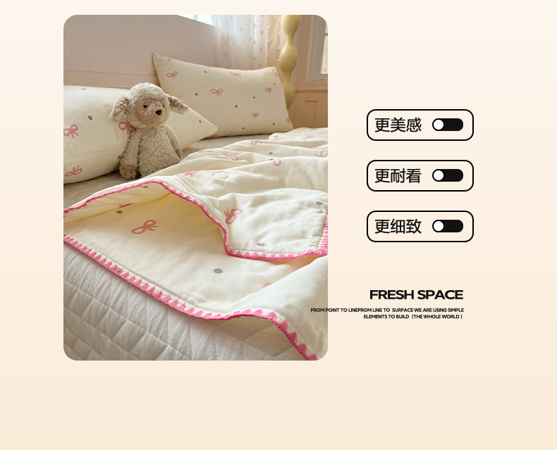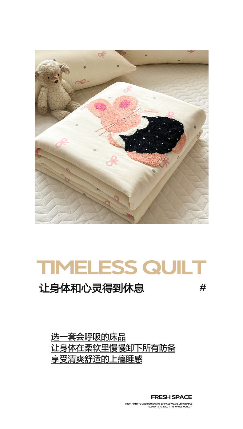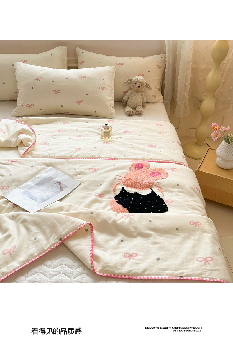 商品名称:一加一 2026新款全棉双层纱卡通毛巾绣大豆夏被夏凉被空调被-卡通生活 蝴蝶结小兔