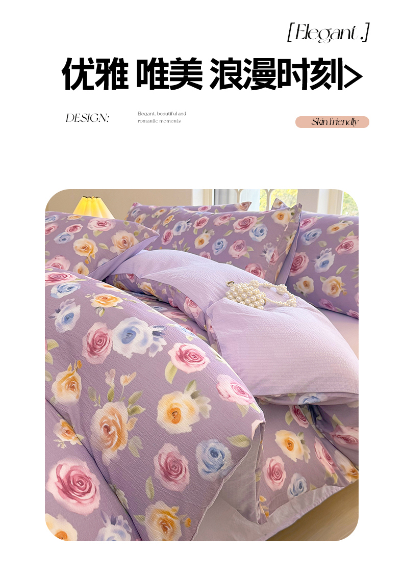 当前位置: 91家纺网 > 商品网购 > 床品套件 > 四件套 > 化纤普通四件套 > 悠米悠家 2026新款亲肤舒适木棉双层纱印花四件套 云樱格语