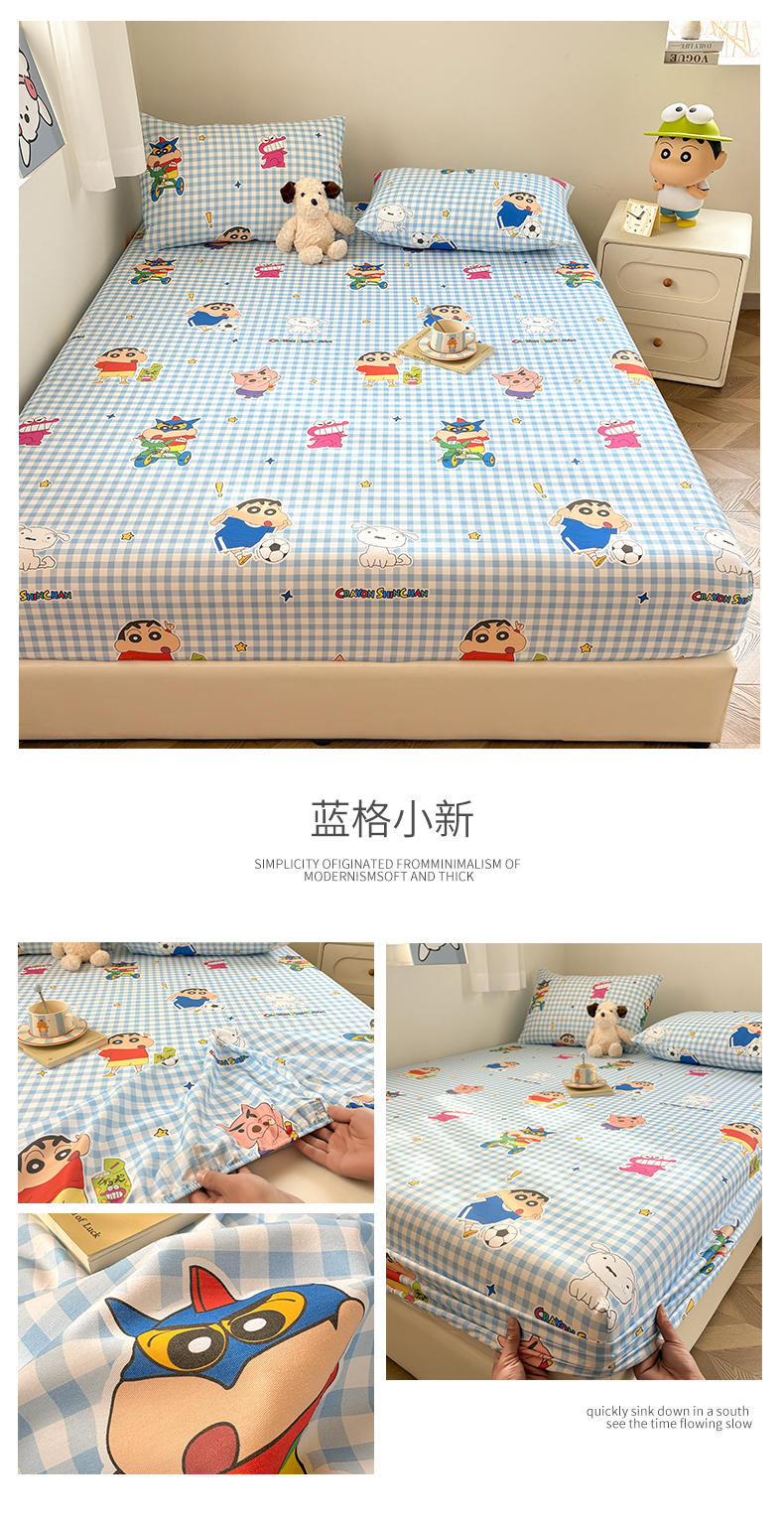 商品名称:居眠 2026新款全棉纯棉印花单层蜡笔小新单床笠床笠单件 蓝格小新