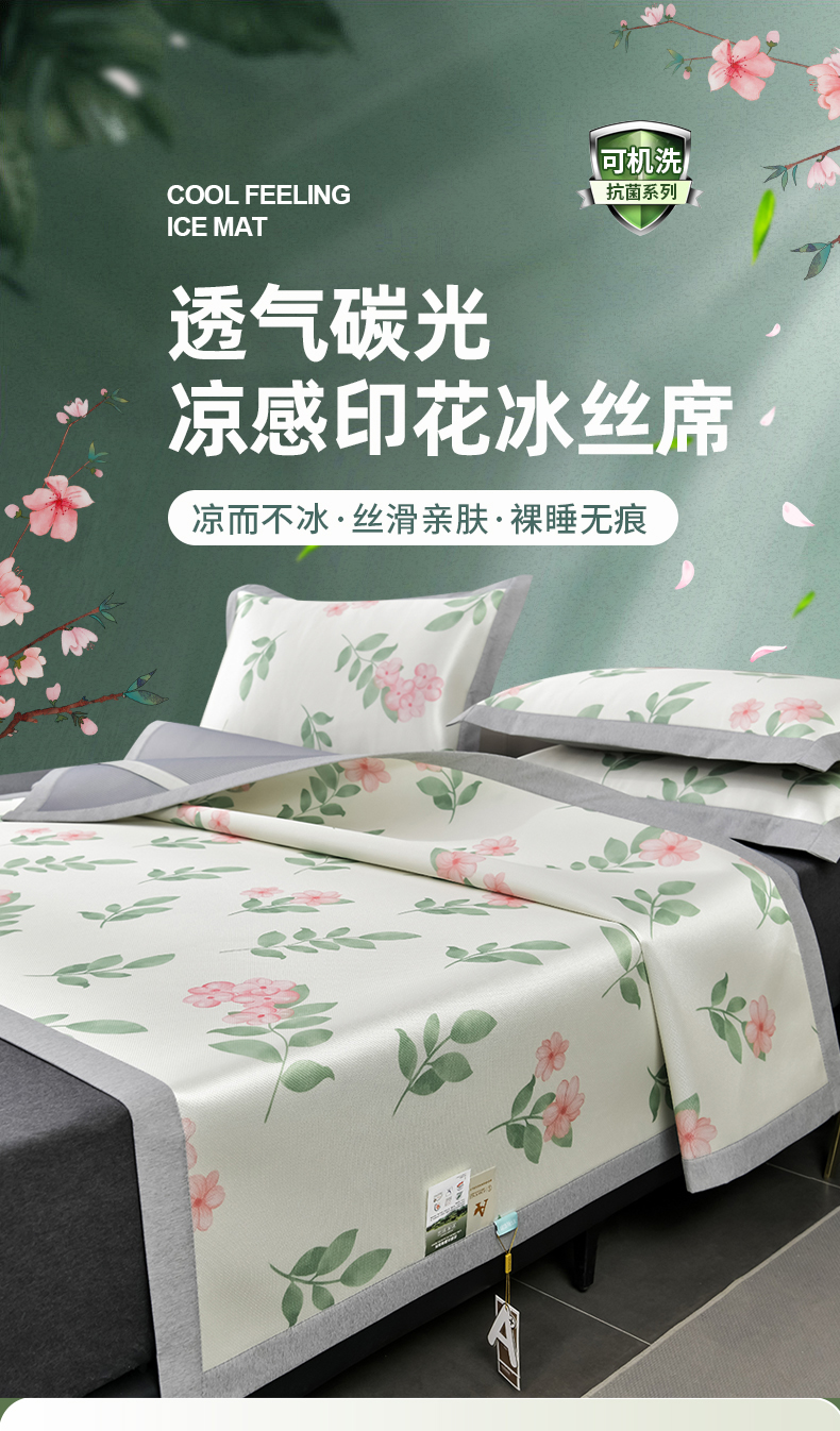 (总)小牛席业 2026新款加厚款碳光凉感印花冰丝席凉席席子,贝贝熊,彩色煤球,花间集,花纹小熊,可爱小象,烂漫山茶花,琉璃叶语-粉色,琉璃叶语-灰色,琉璃叶语-蓝色,琉璃叶语-绿色,轻奢赫本,清凉夏日,清新叶语-灰,清新叶语-绿,清馨玫瑰,仙仙草,小号南瓜,熊猫胖哒,椰树大象