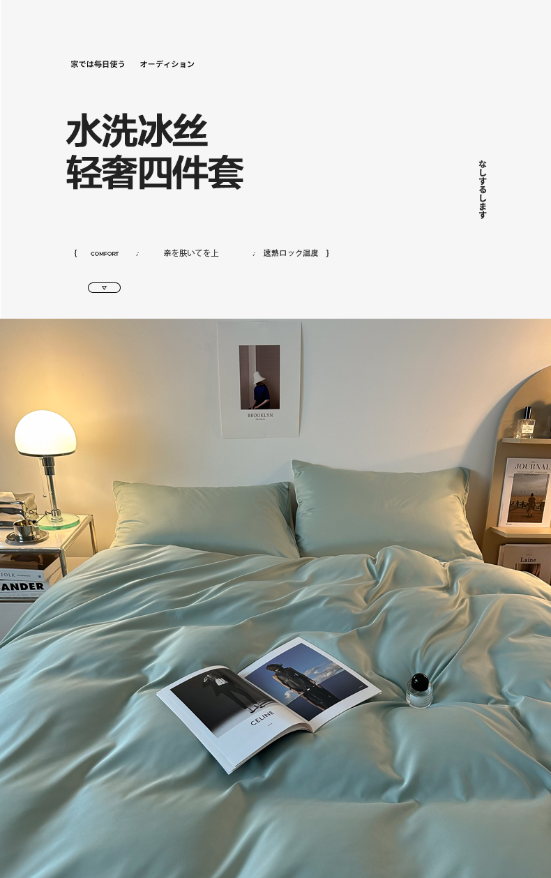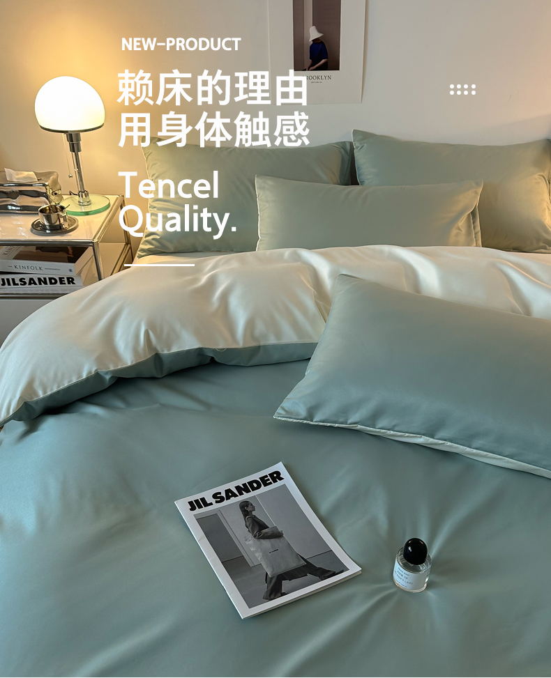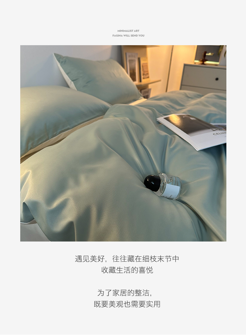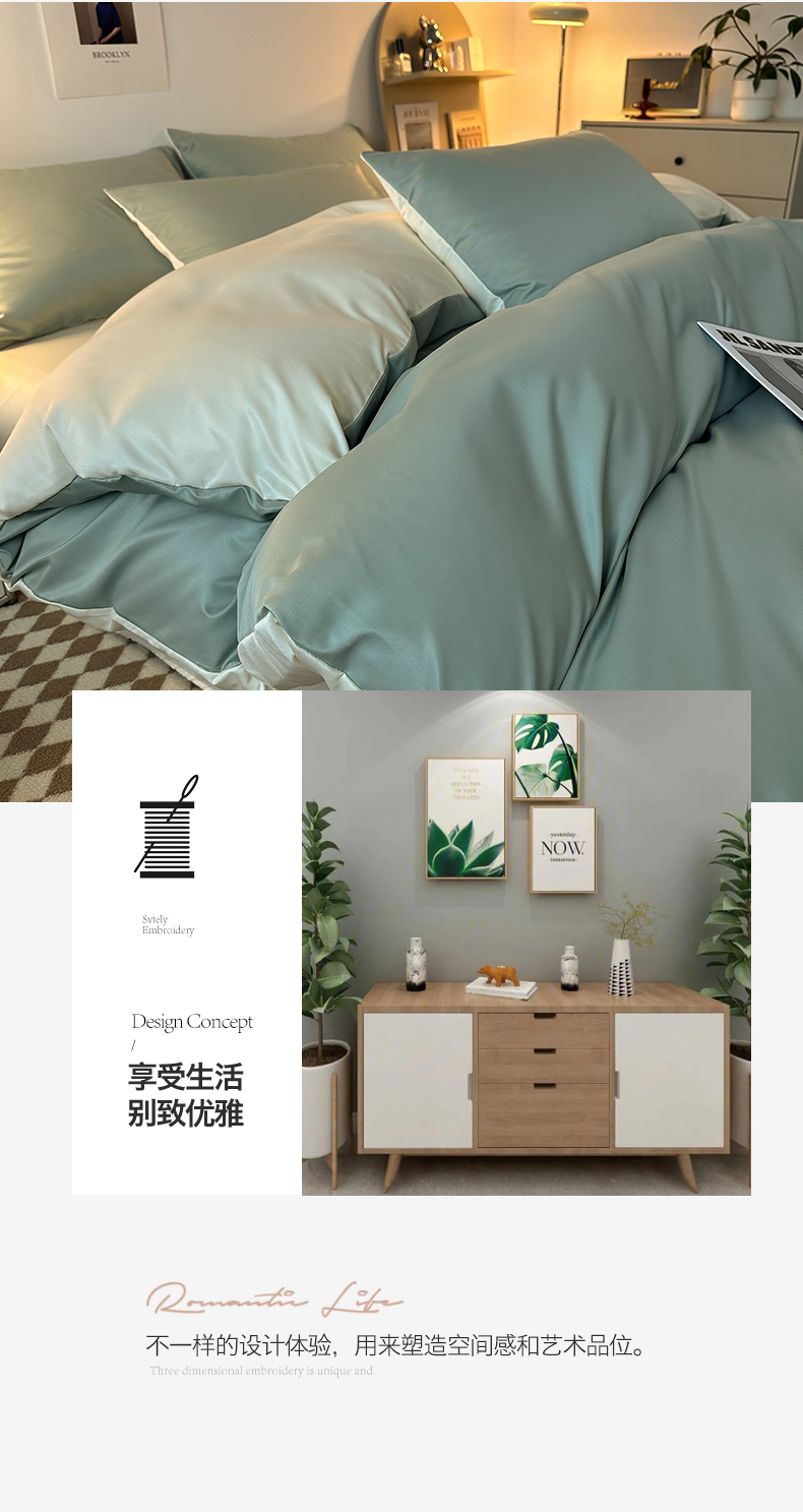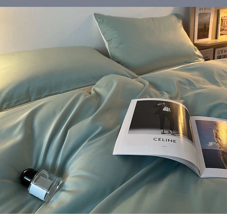 当前位置: 91家纺网 > 商品网购 > 床品套件 > 四件套 > 其它四件套 > 缦绣阁家纺 2026新款夏季轻奢水洗冰丝四件套真丝简约纯色被罩被套学生宿舍三件套-洛可可系列 洛可可-水绿+芝士