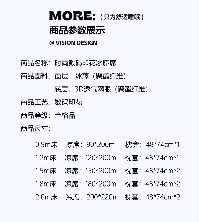 180x200cm凉席+枕套一对