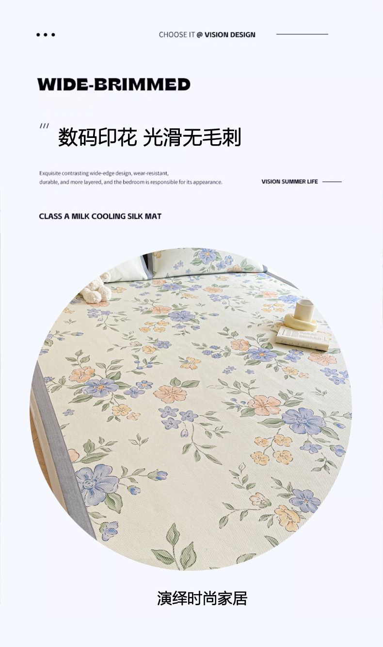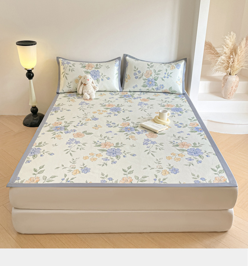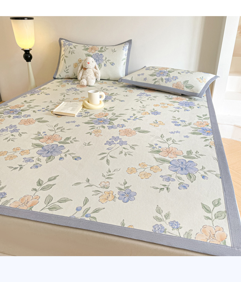 商品名称:柒月家居 2026新款小清新印花冰藤系列凉席席子-平铺款 蓝橘之夏