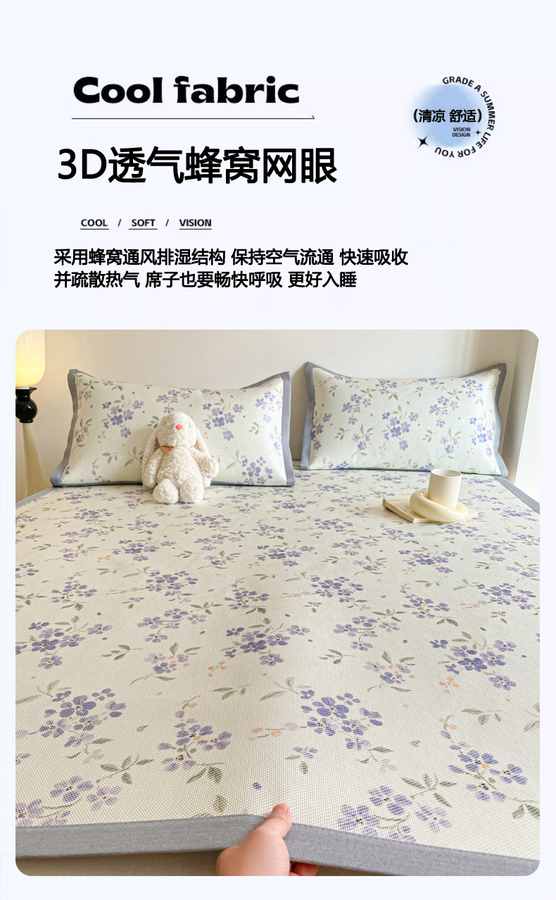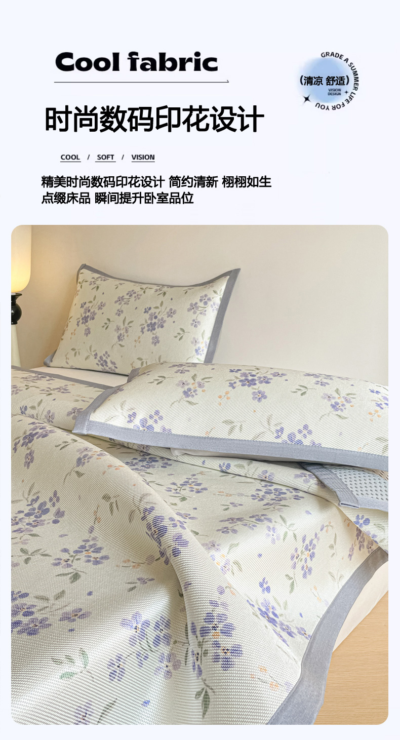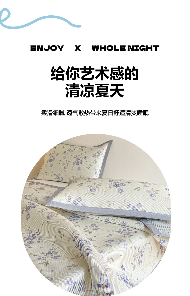 商品名称:柒月家居 2026新款小清新印花冰藤系列凉席席子-平铺款 紫漫
