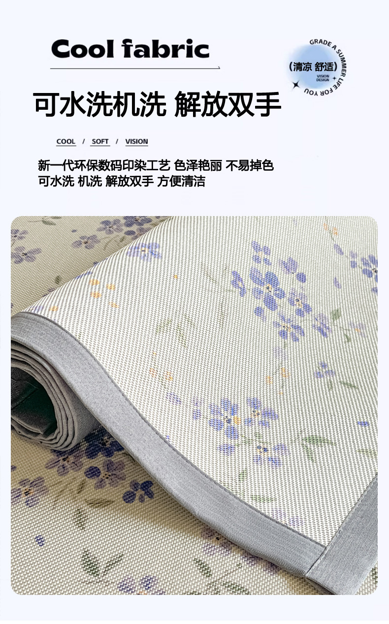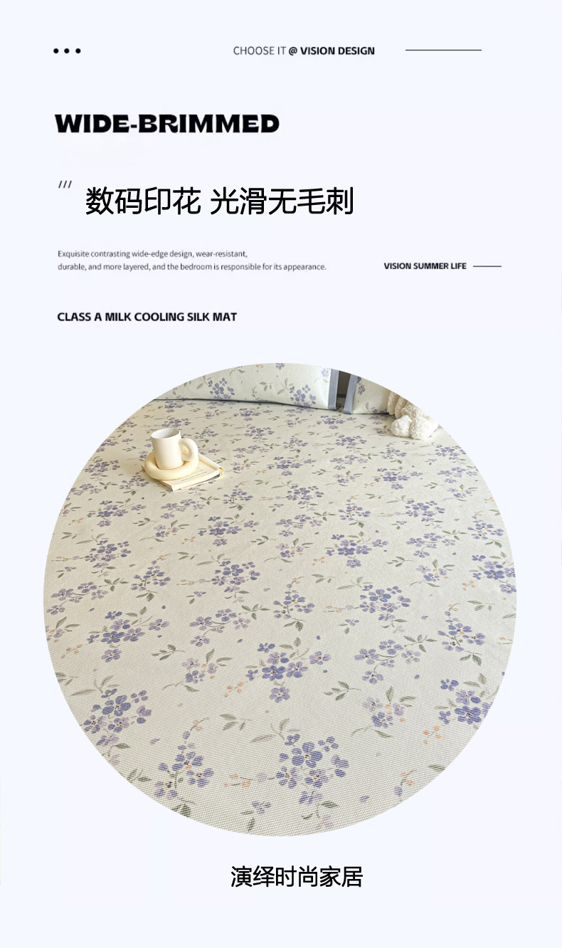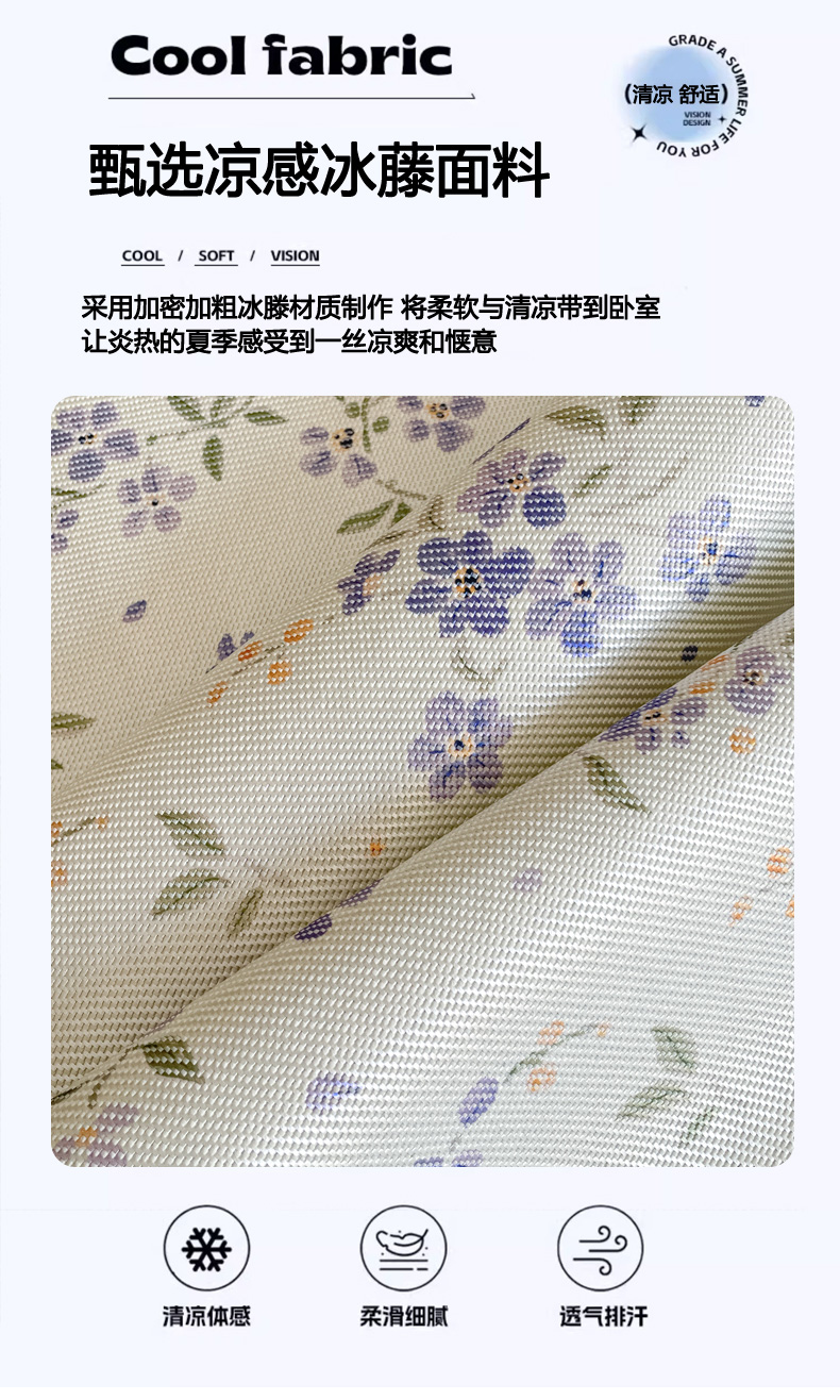商品名称:柒月家居 2026新款小清新印花冰藤系列凉席席子-平铺款 紫漫