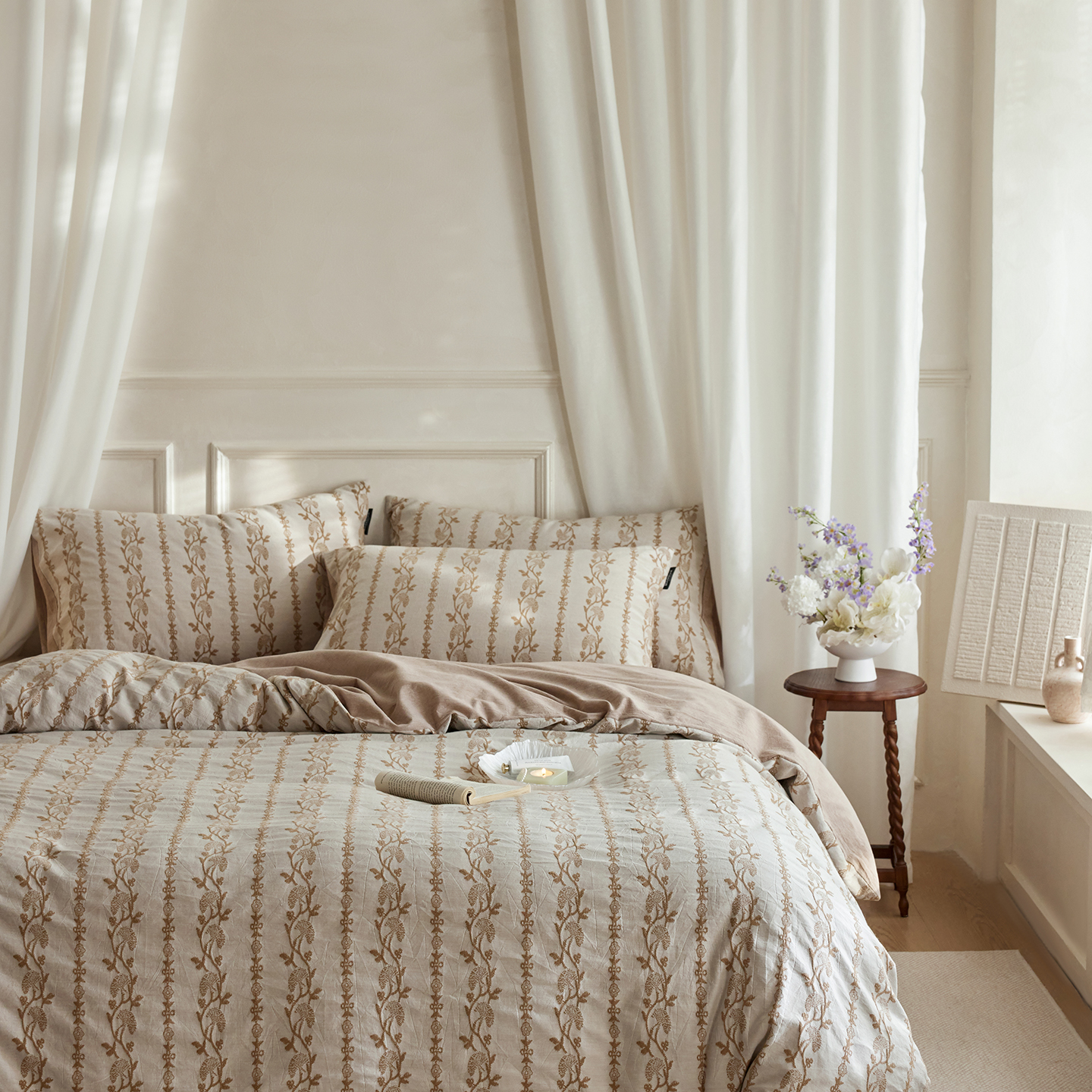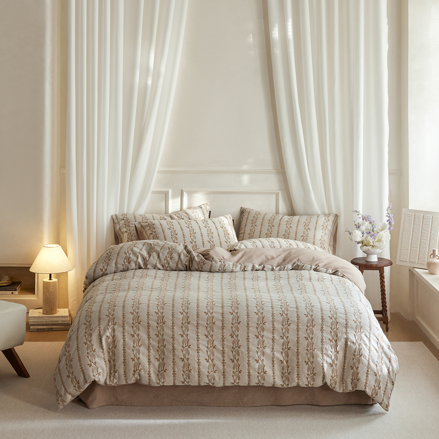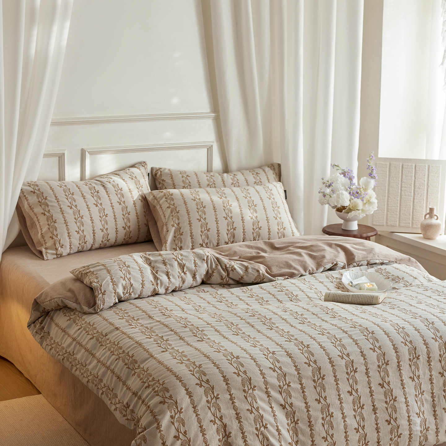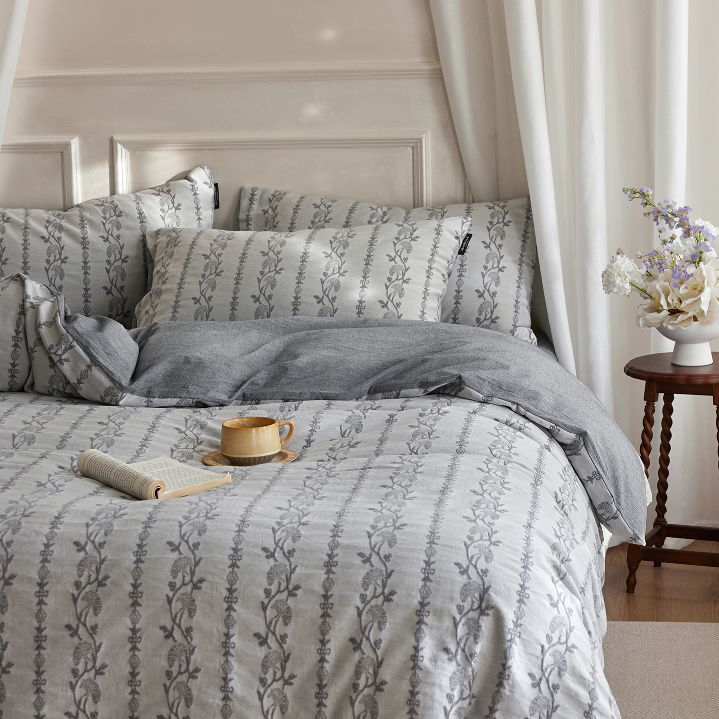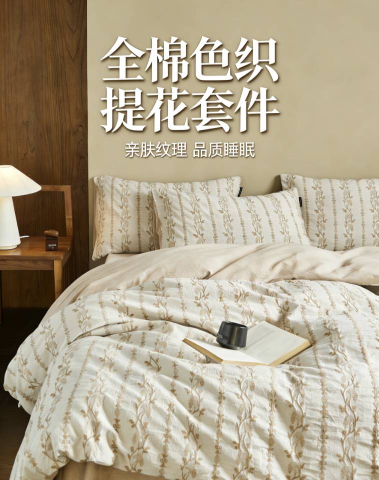 当前位置: 91家纺网 > 商品网购 > 床品套件 > 四件套 > 全棉普通四件套 > (总)沐珩家纺 2026新款40s精梳厚织提花麻感水洗全棉四件套(风格二)