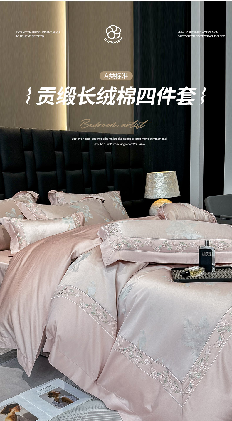 当前位置: 91家纺网 > 商品网购 > 床品套件 > 四件套 > 长绒棉四件套 > 2026新款轻奢风A类厚织提花长绒棉纯棉四件套100全棉高档重工刺绣被套床单床笠 薇澜-凝烟粉