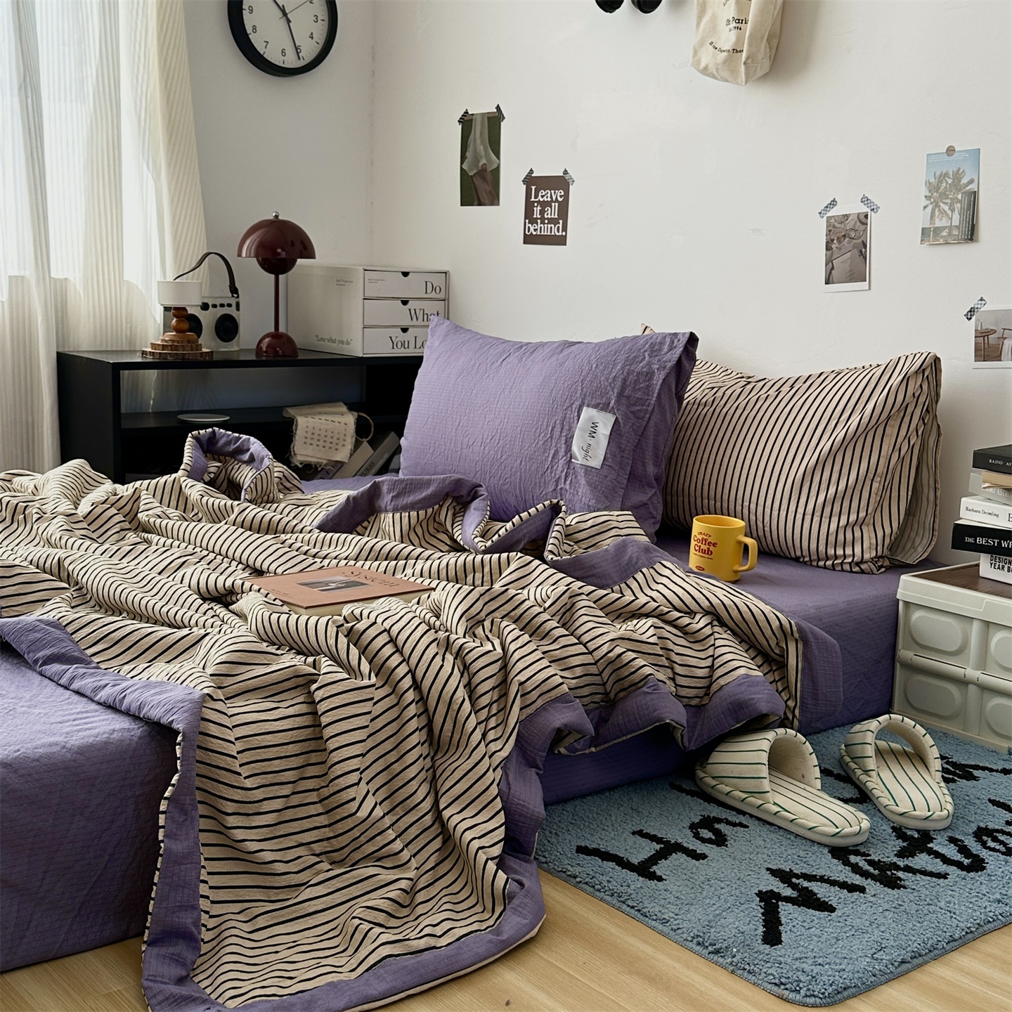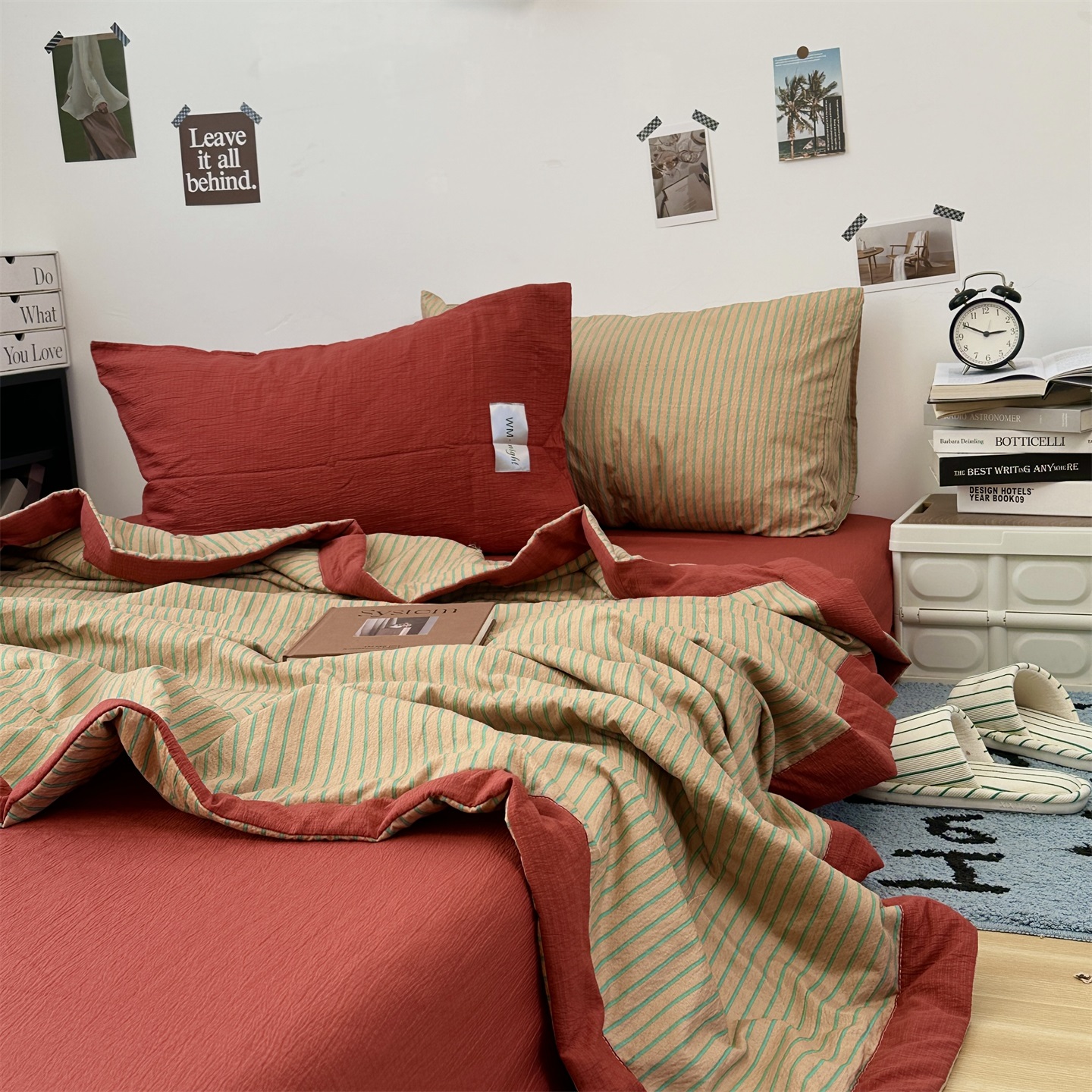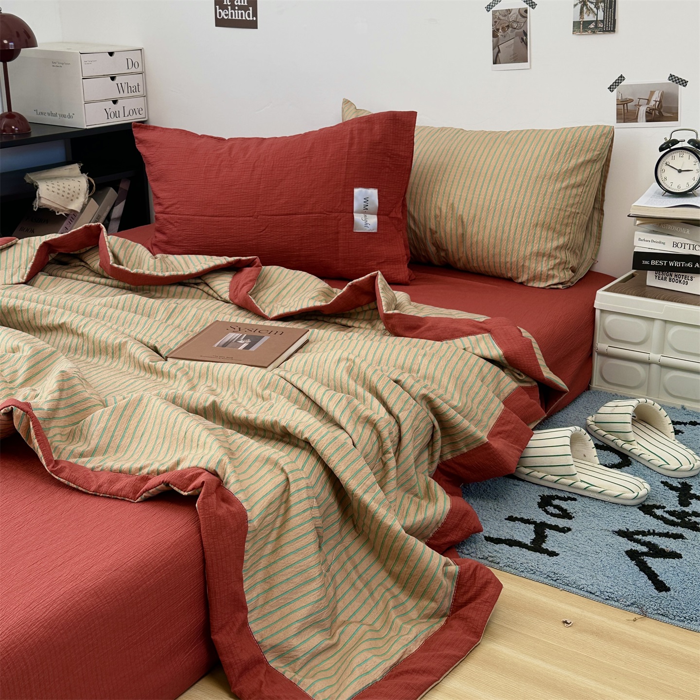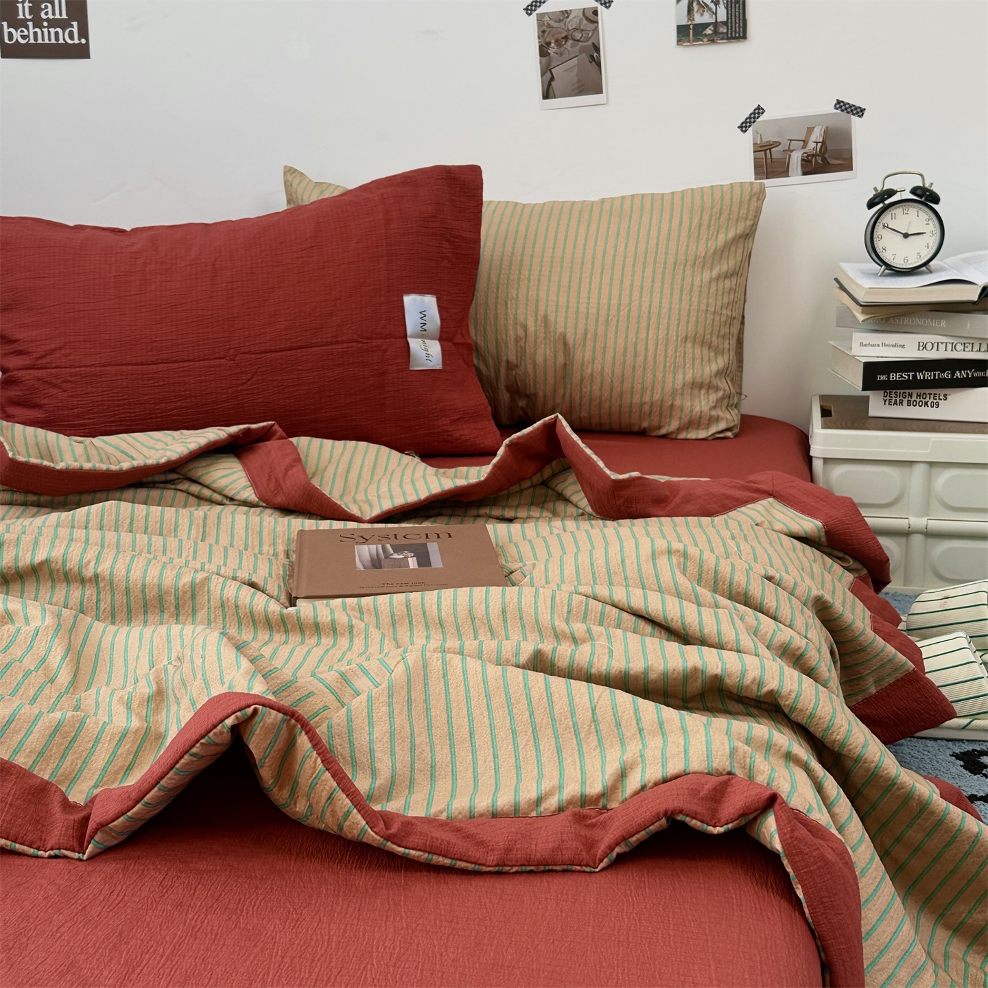 (总)拾一 2026新款简约日式条纹软糯水洗棉木棉夏凉被四件套单件空调被,夏凉被 红-白条,夏凉被 草绿-绿条,夏凉被 黑-白条,夏凉被 黄-咖条,夏凉被 灰-黑条,夏凉被 卡其-绿条,夏凉被 克莱因蓝-白条,夏凉被 蓝-咖条,夏凉被 奶茶-棕条,夏凉被 浅咖-绿条,夏凉被 紫-绿条,夏凉被 棕-桔条
