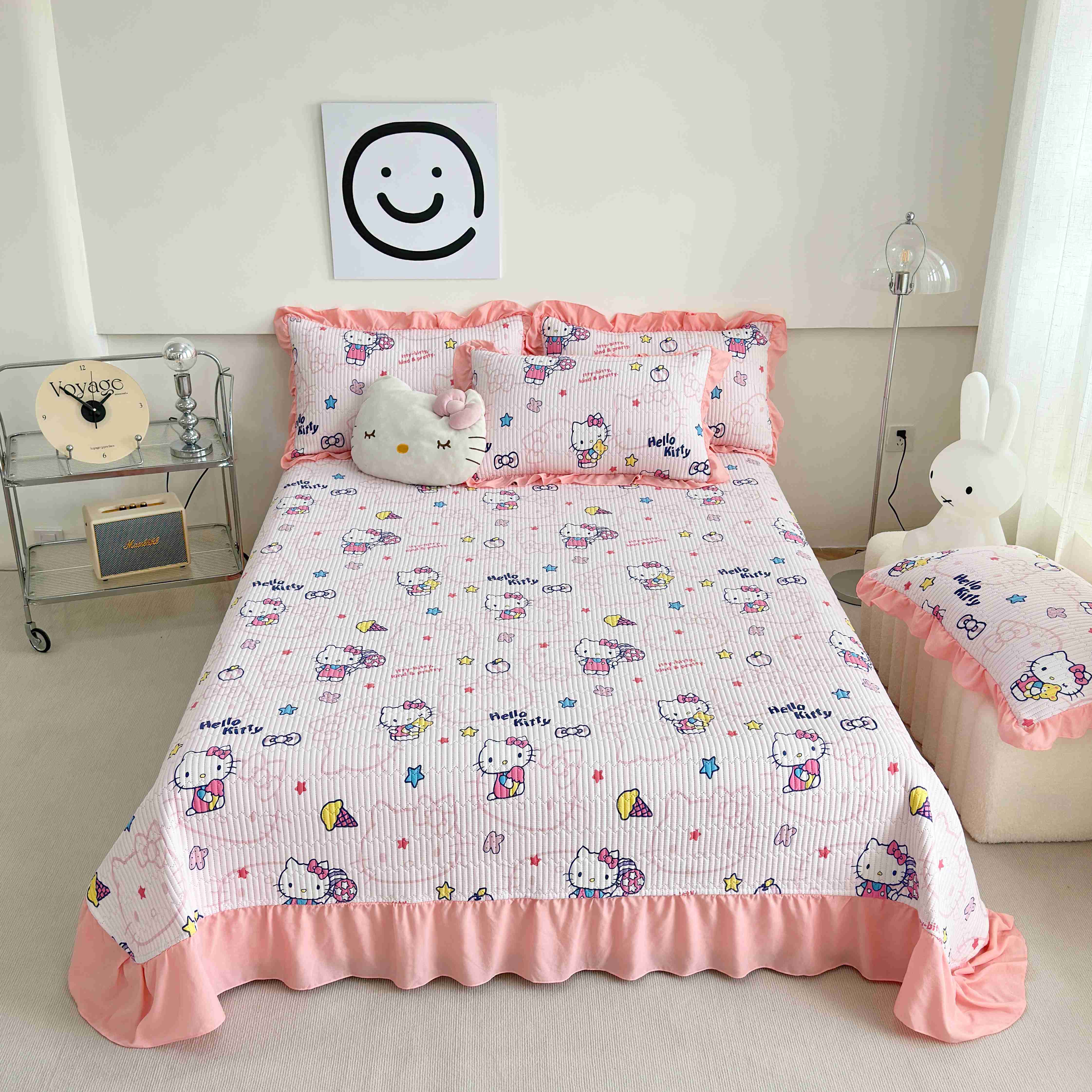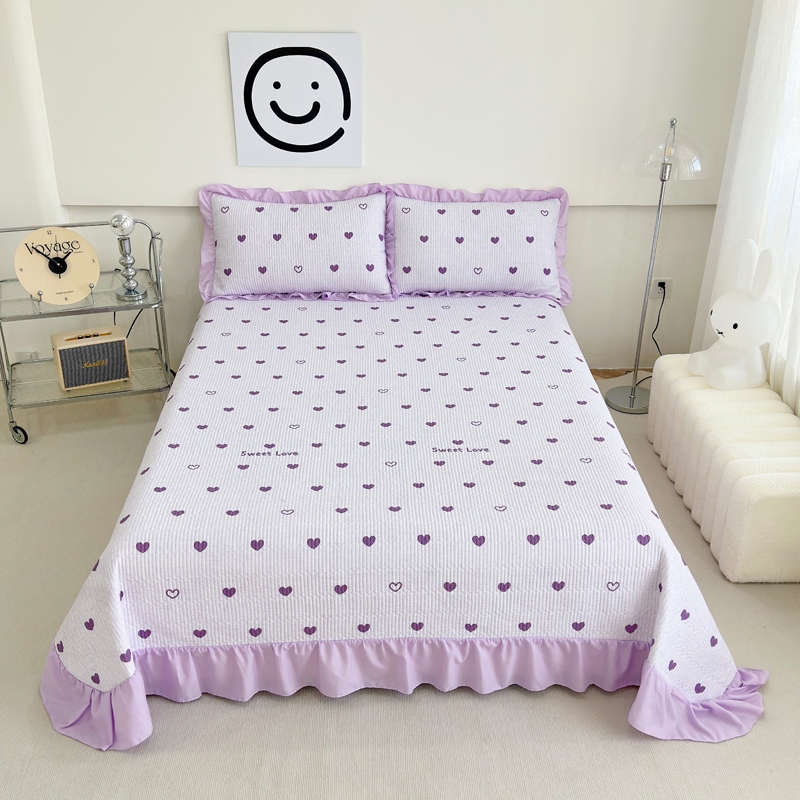 赛琳 2026新款水洗棉花边床盖单件床盖四季通用夹棉床盖 床盖单件 咖啡小熊