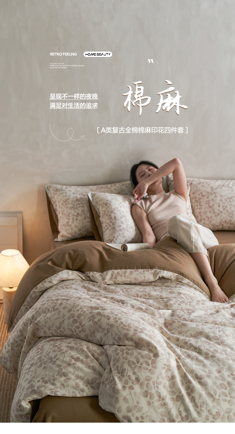 商品名称:如一 2026新款A类复古全棉棉麻印花四件套 觅影