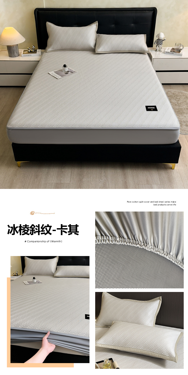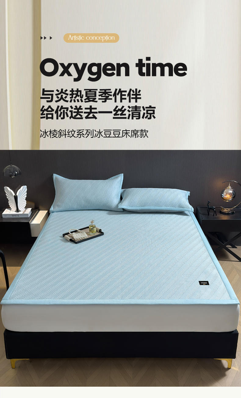 (总)慕木家纺 2026新款A类高克重三明治复合乙纶提花冰豆豆凉席床笠冰棱斜纹系列(提供买家秀)