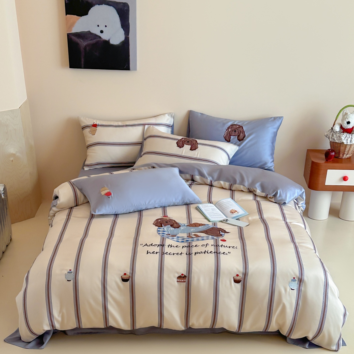 当前位置: 91家纺网 > 商品网购 > 床品套件 > 四件套 > 莱赛尔四件套 > 风向标家纺 2026春夏新款兰精60s数码条纹天丝绣花四件套 海盐慕斯