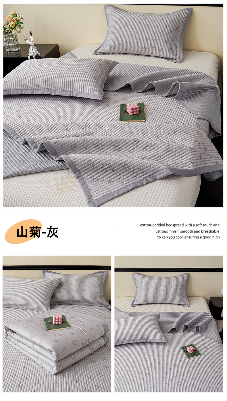 • 91家纺网 家纺一手货源 找家纺 金艾草 2026春夏新款莫代尔天丝水洗床盖有同款夏被床盖单件 山茶花-灰色
