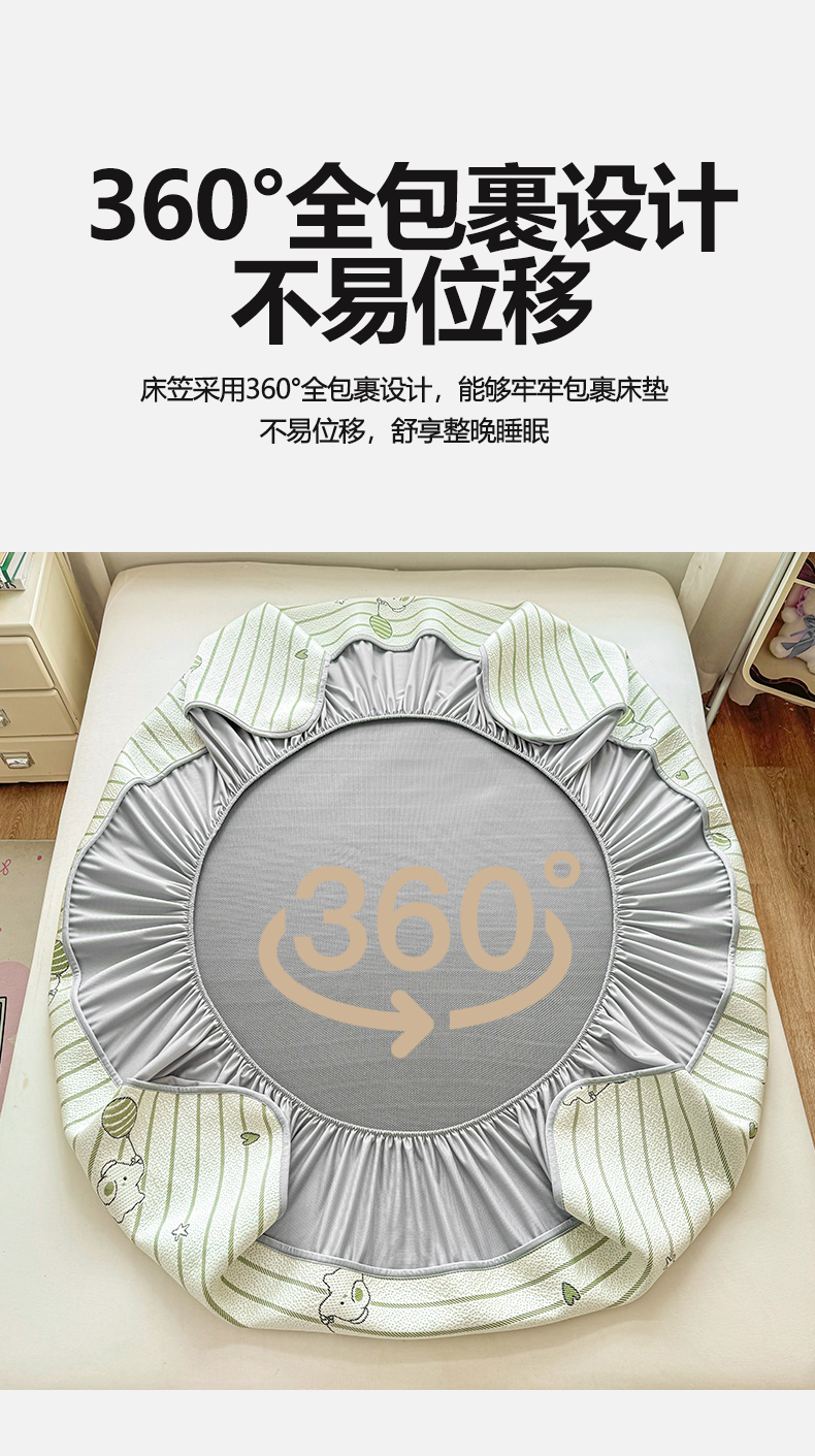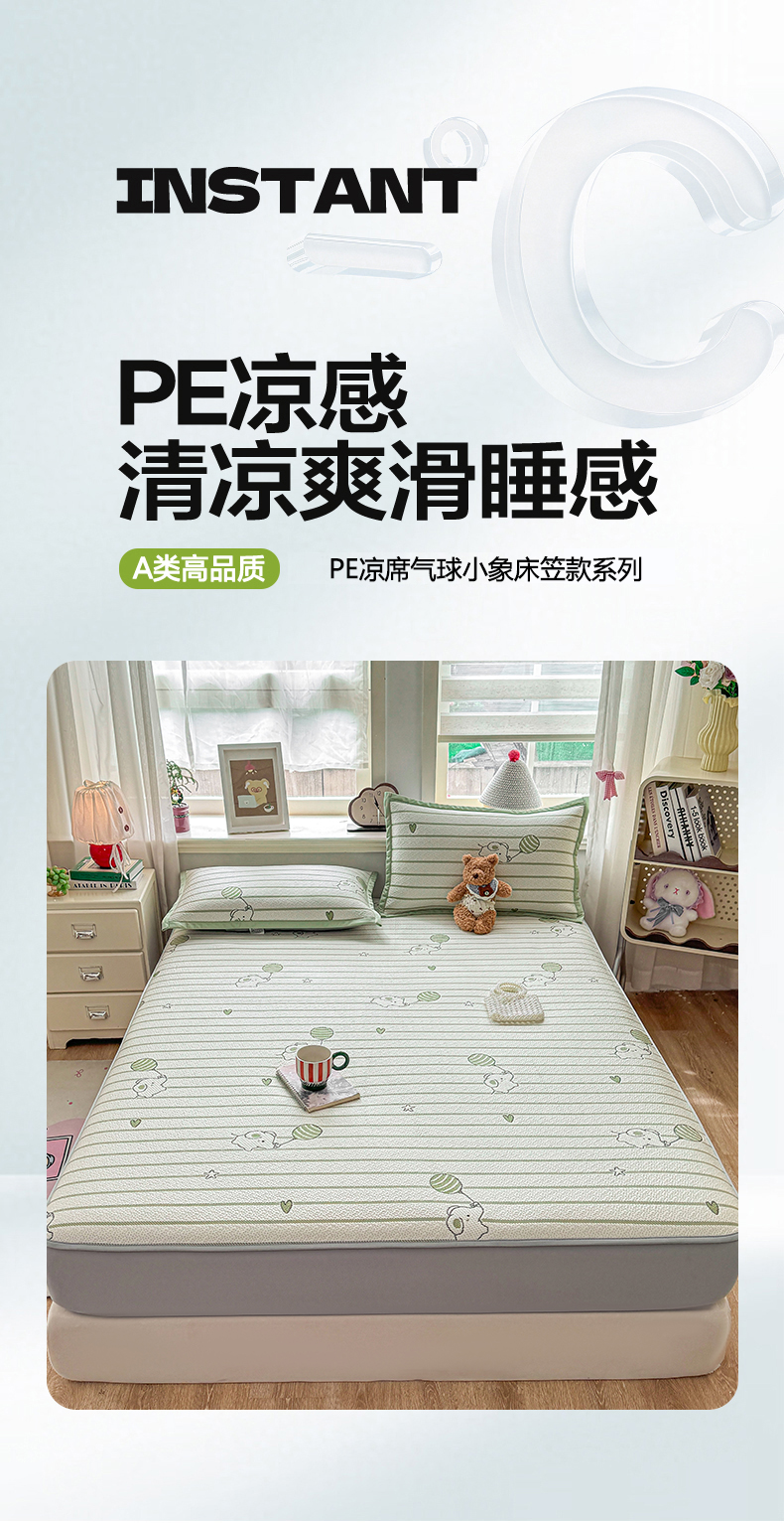 当前位置: 91家纺网 > 商品网购 > 床上用品 > 凉席 > 其他凉席 > 源舍家纺 2026新款A类PE卡通凉席三件套小红书爆款可水洗空调软席凉感值超0.25-床笠 气球小象-绿啵啵床笠款
