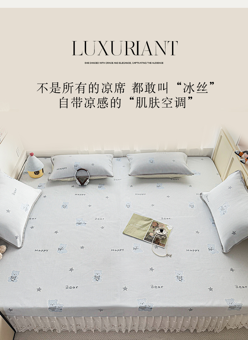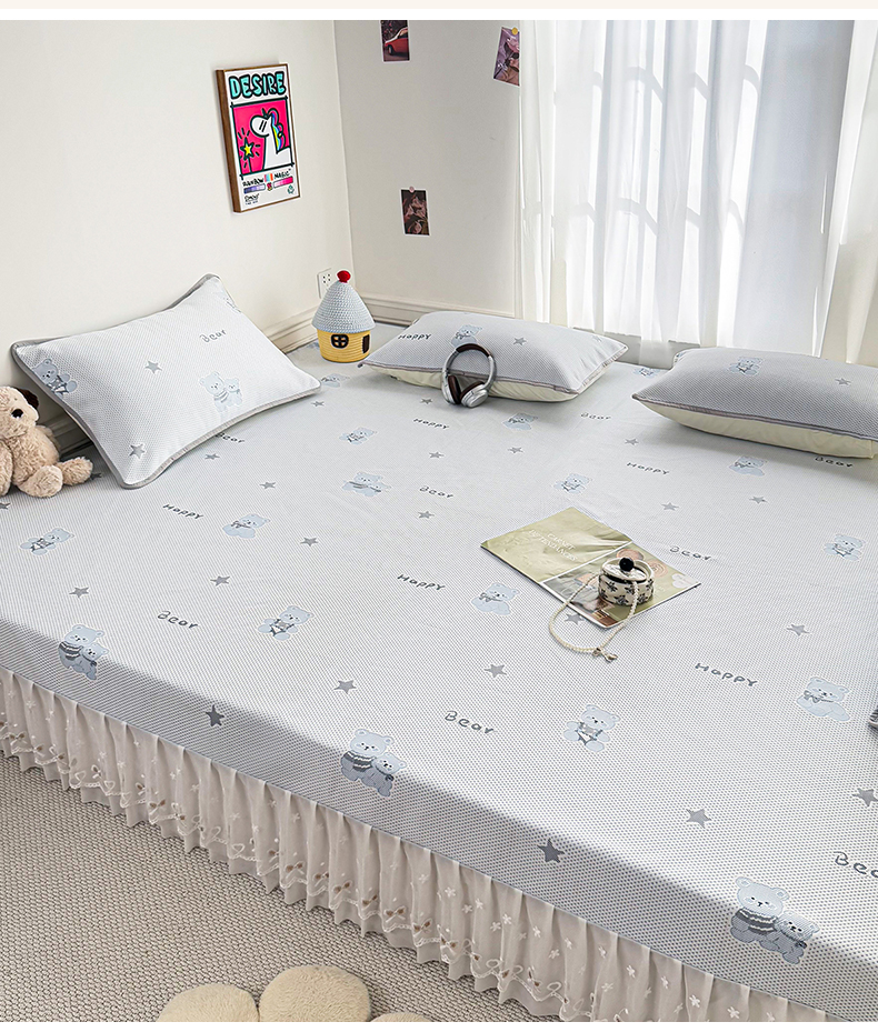 (总)美达家纺 2026新款提花床盖冰丝针织凉席,爱情树-灰,小狗-咖,小象-粉,小熊-兰,枝繁叶茂-深兰