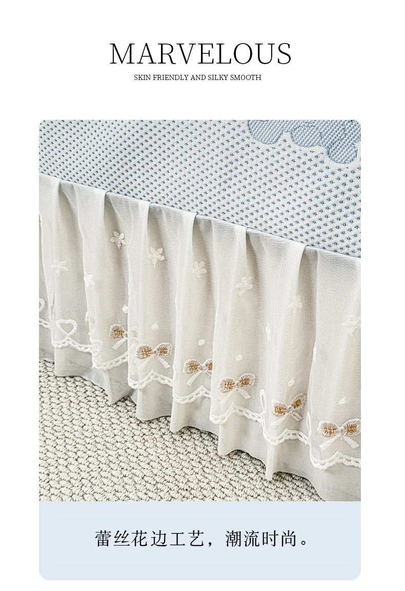 (总)美达家纺 2025新款全棉纯棉AB版蕾丝小花边单层床裙四件套,解语花,南湘,沁雨花叶,悦棠,花香梦境,夏沫浅语-蓝,恋爱小兔,氧气格调,婉宁-粉,镜花水月