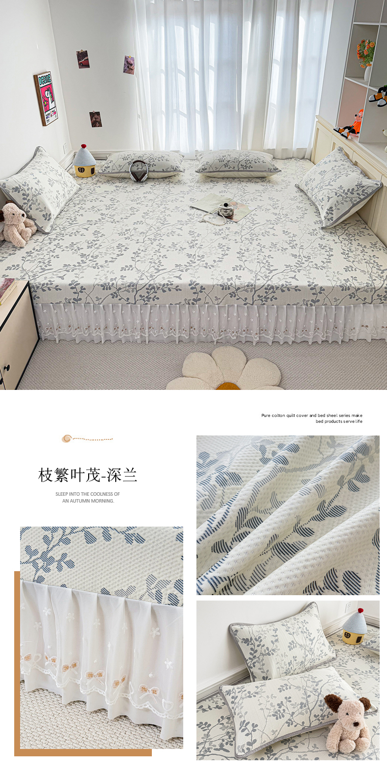 (总)美达家纺 2025新款全棉AB版单层床裙,解语花,南湘,沁雨花叶,悦棠,花香梦境,夏沫浅语-蓝