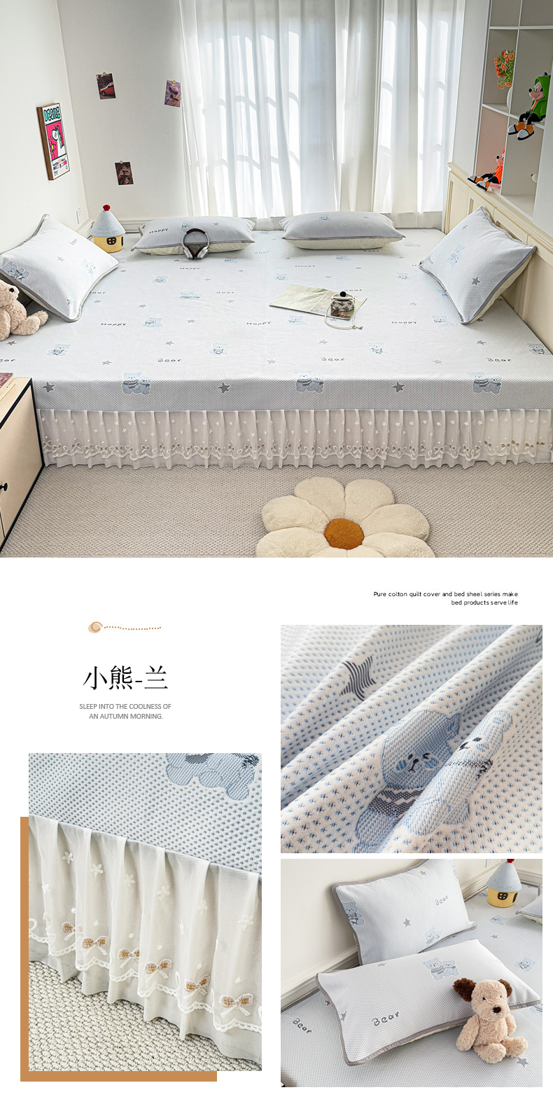 (总)美达家纺 2026新款A类全棉色织六层纱高温砂洗花边床盖单品床盖床盖单件,巴赫,薄荷小熊,春日宴,棉花糖,云间织梦,追光者