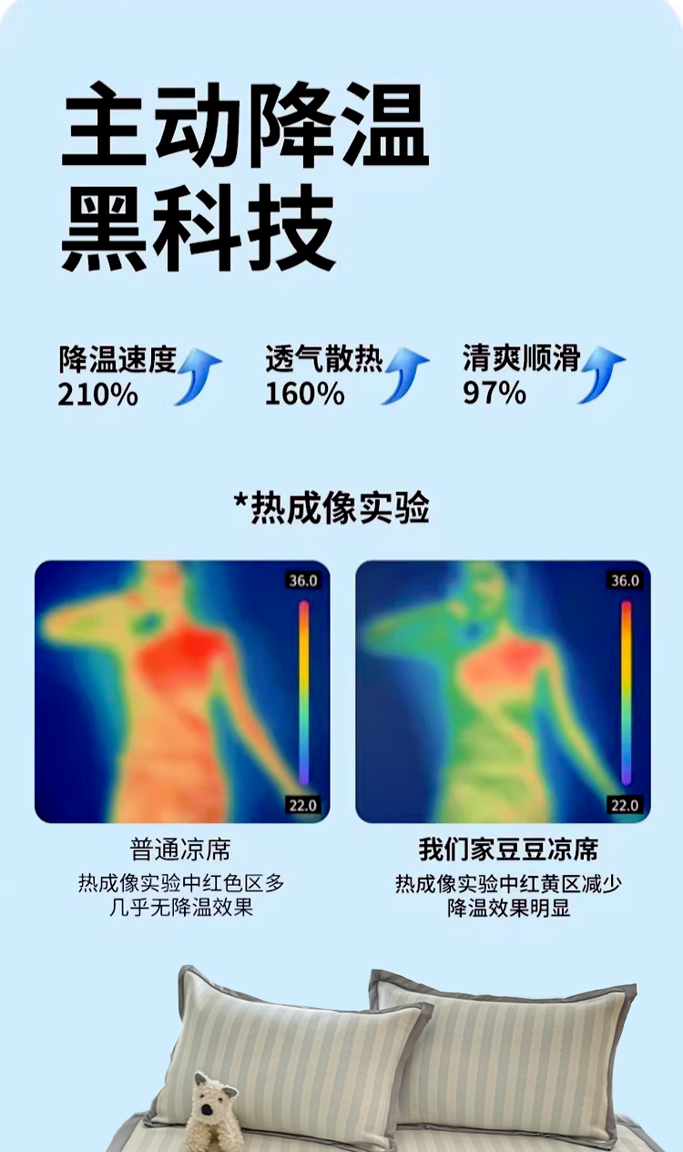 川悦生活 2026新款凉感冰丝席小阪凉感冰丝数码印花席学生床 席星星西高地,席星星西高地