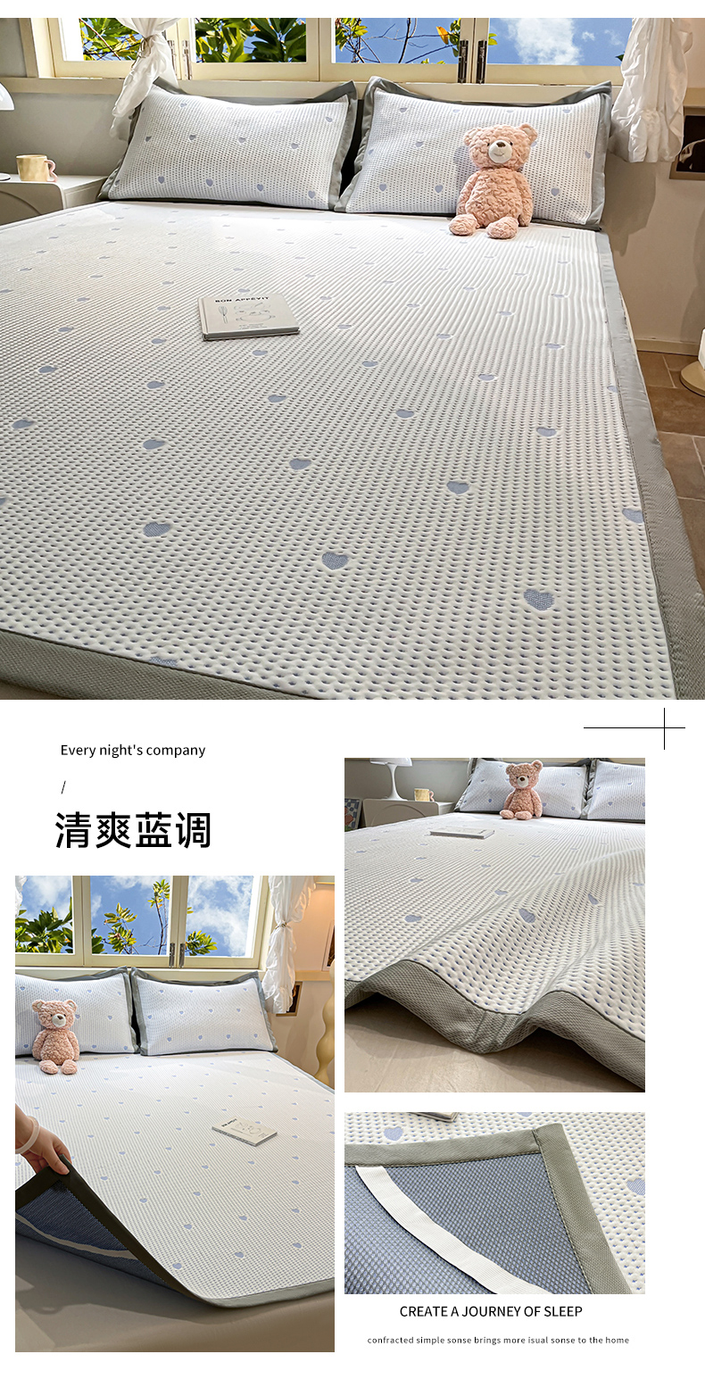 (总)川悦生活 2026新款PE凉感提花豆豆席平铺款三件套,费尔冰雪,尼尔-粉,尼尔-星灰,朴朴小旺,甜心-奶粉,甜心-水蓝,甜心-月灰,甜心奶猫,夏季岛屿-粉,夏季岛屿-月银,星花小猫,月桂-月银,奶油星月,爱心猫咪-茶青,爱心猫咪-月白,清爽蓝调,小熊仔,樱桃果塔,沐月玫瑰-清粉