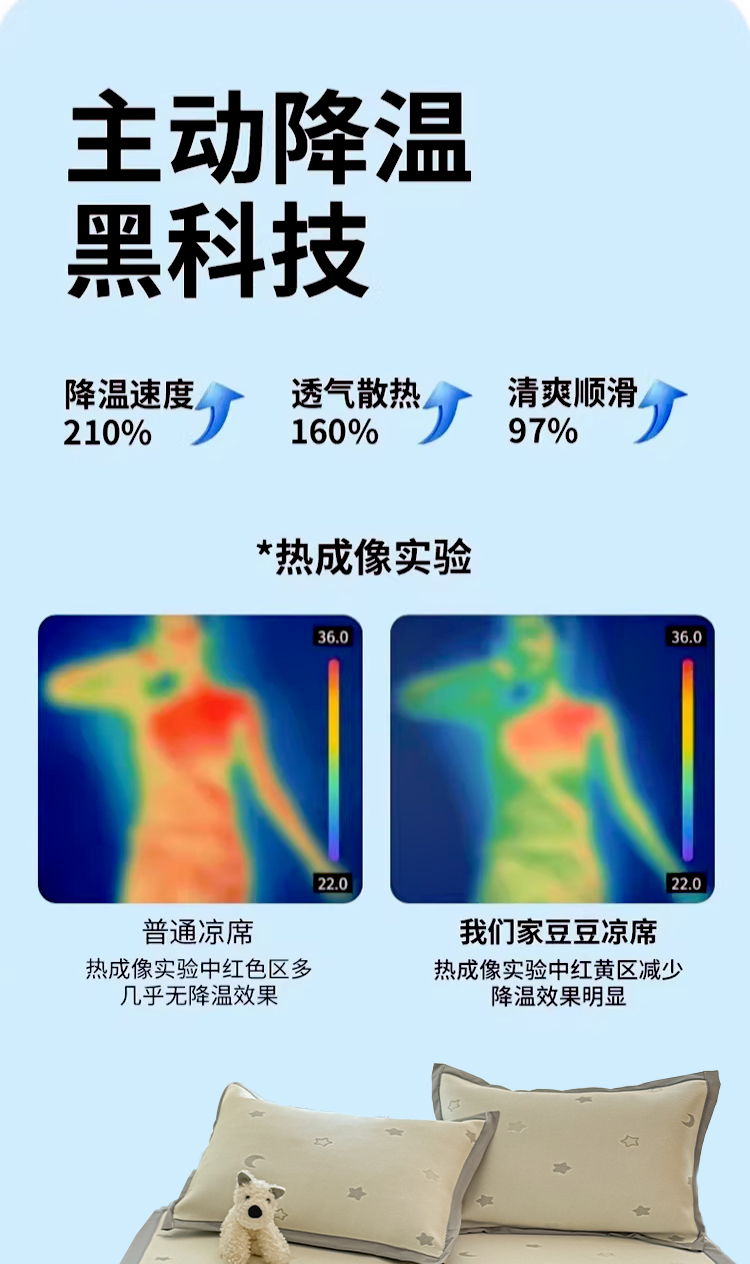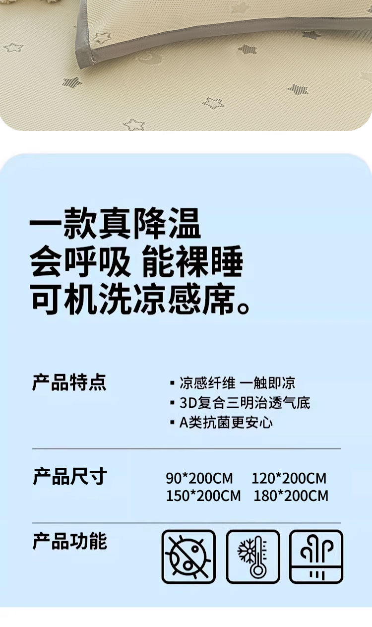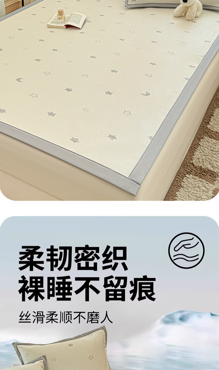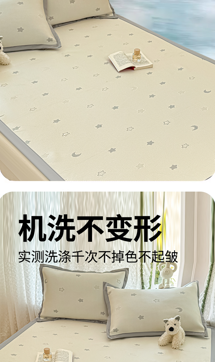川悦生活 2026新款凉感冰丝席小阪凉感冰丝数码印花席学生床 席星星西高地,席星星西高地