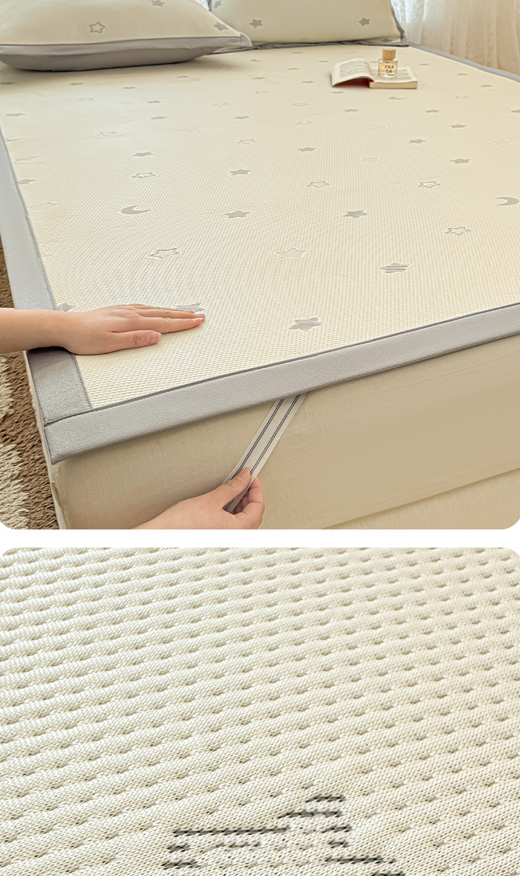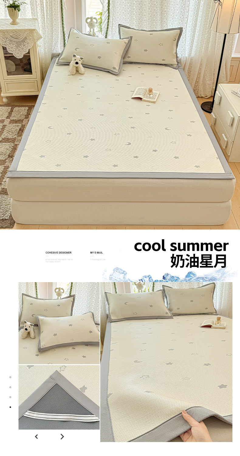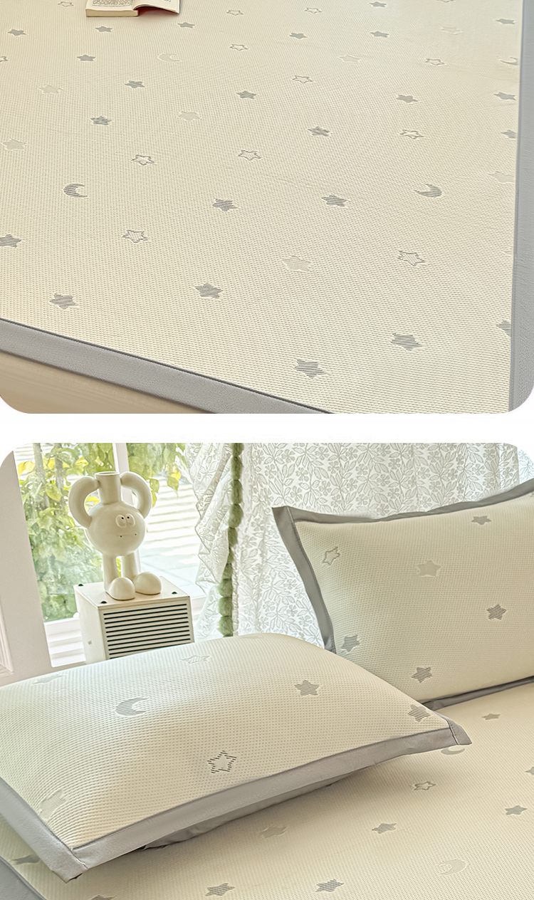川悦生活 2026新款PE凉感提花豆豆席平铺款三件套 奶油星月