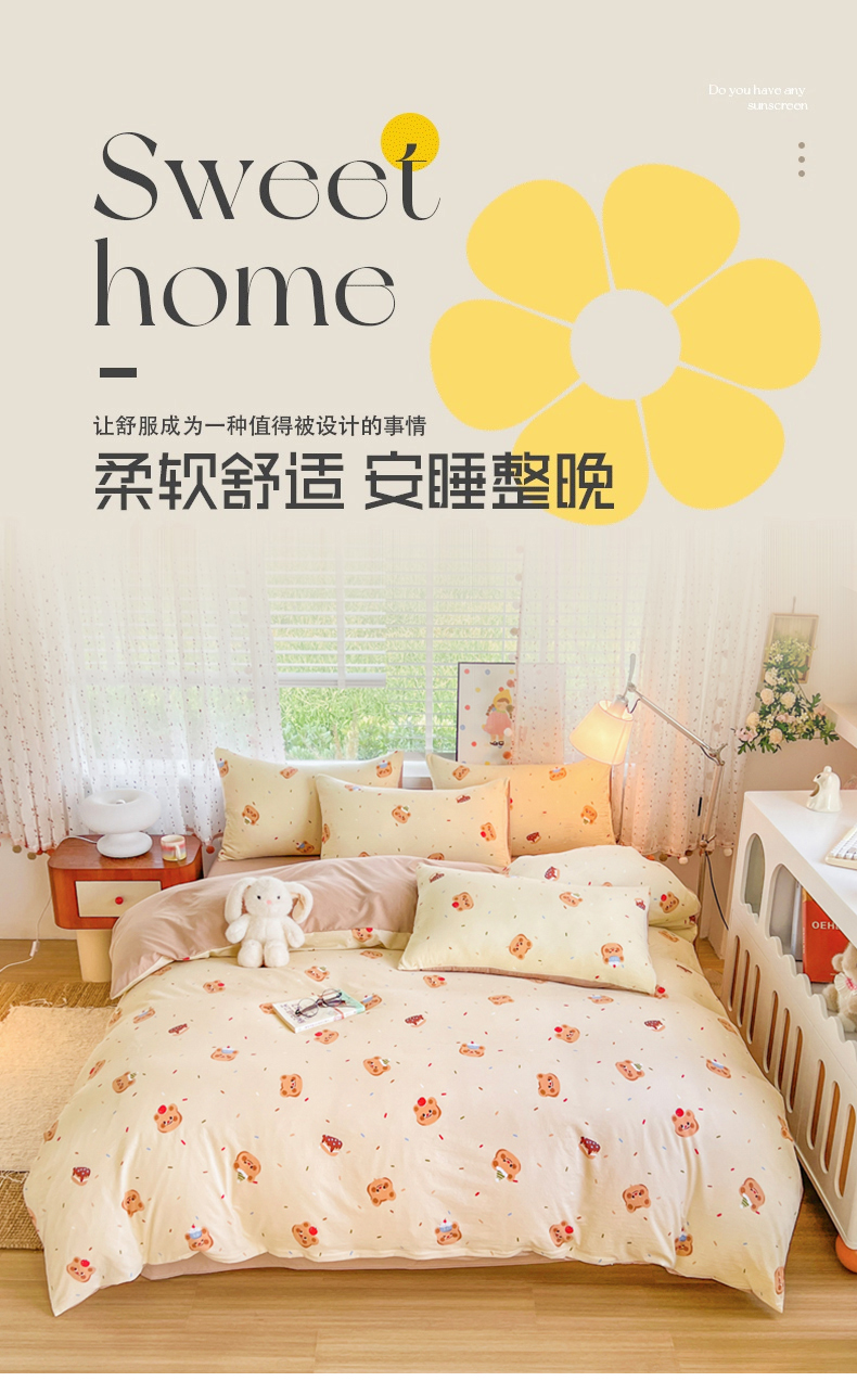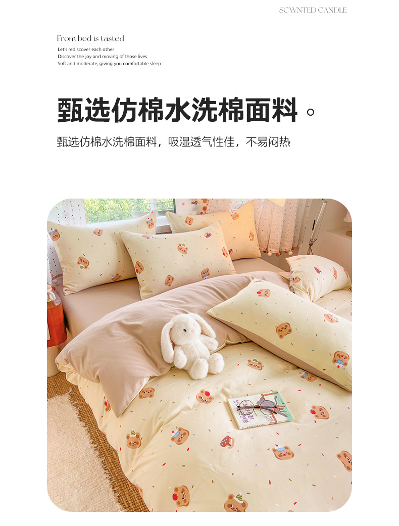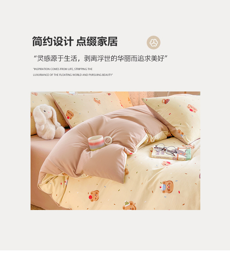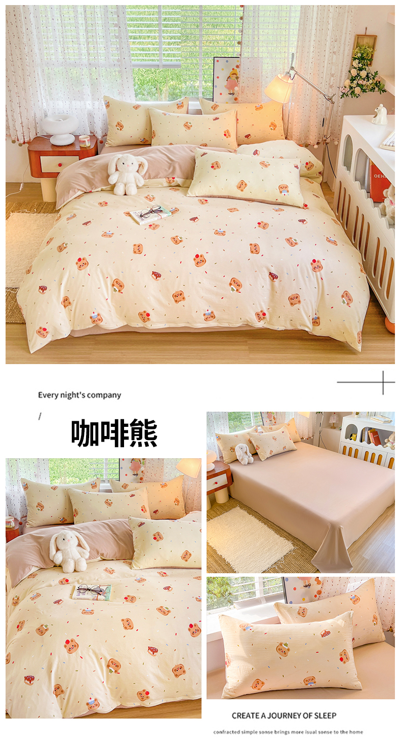 当前位置: 91家纺网 > 商品网购 > 床品套件 > 四件套 > 水洗棉四件套 > 简冠家纺 2026新款仿棉水洗棉四件套 咖啡熊