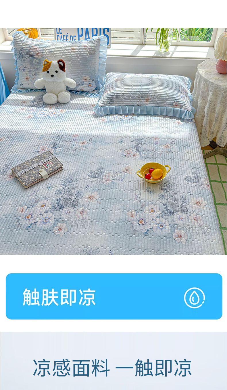 商品名称:(总)冬然家纺 2026新款锦氨凉感丝数码印花工艺云感纱花边凉席席子