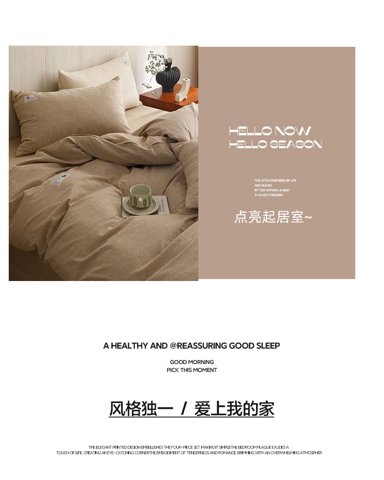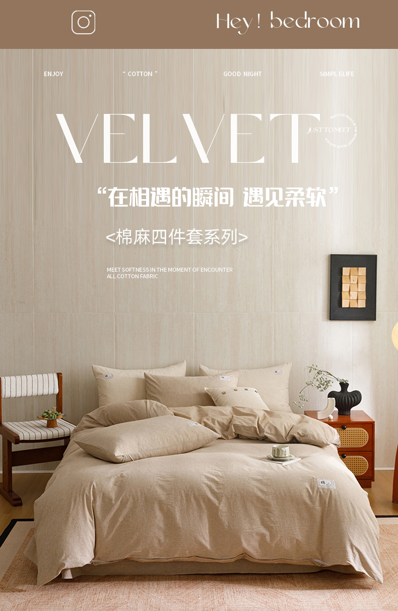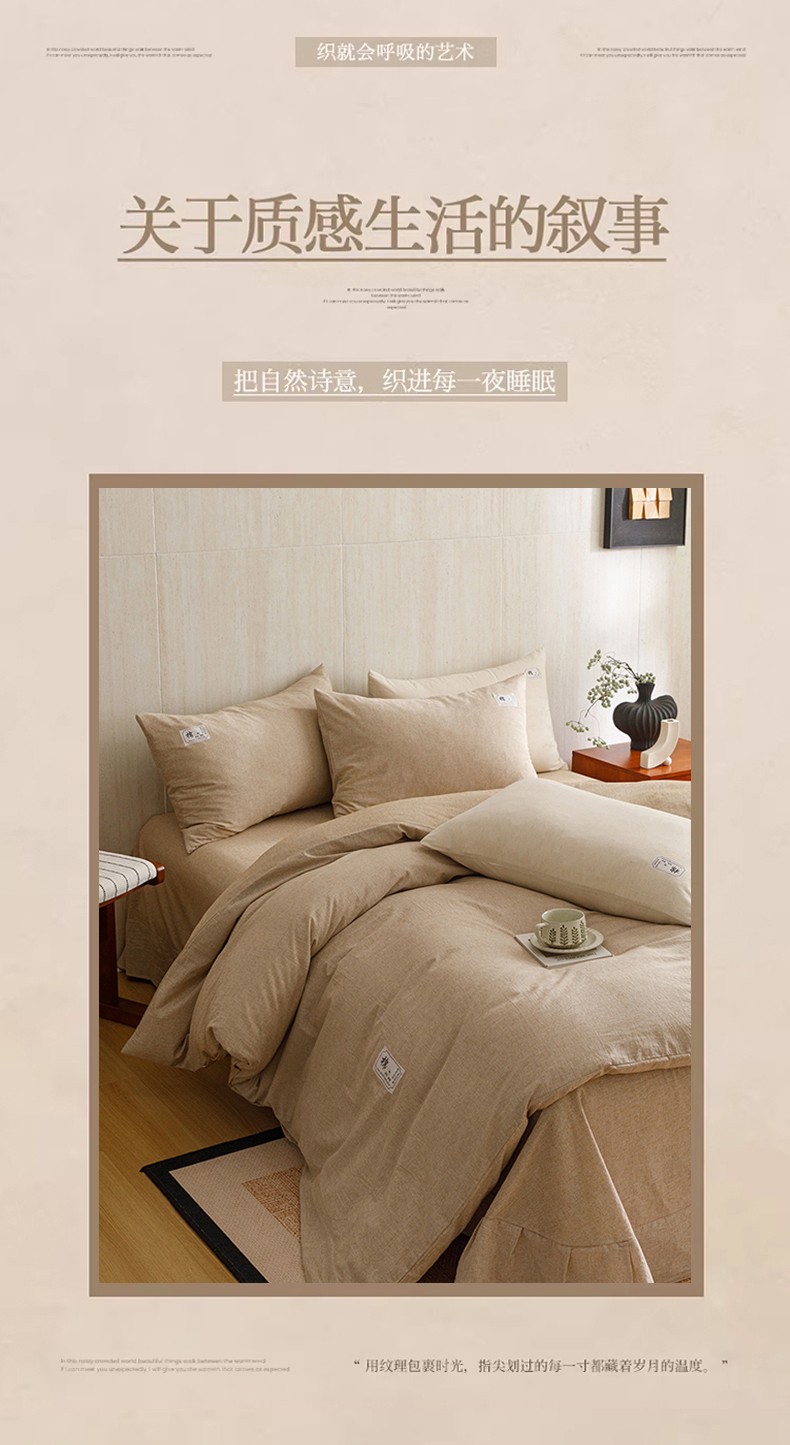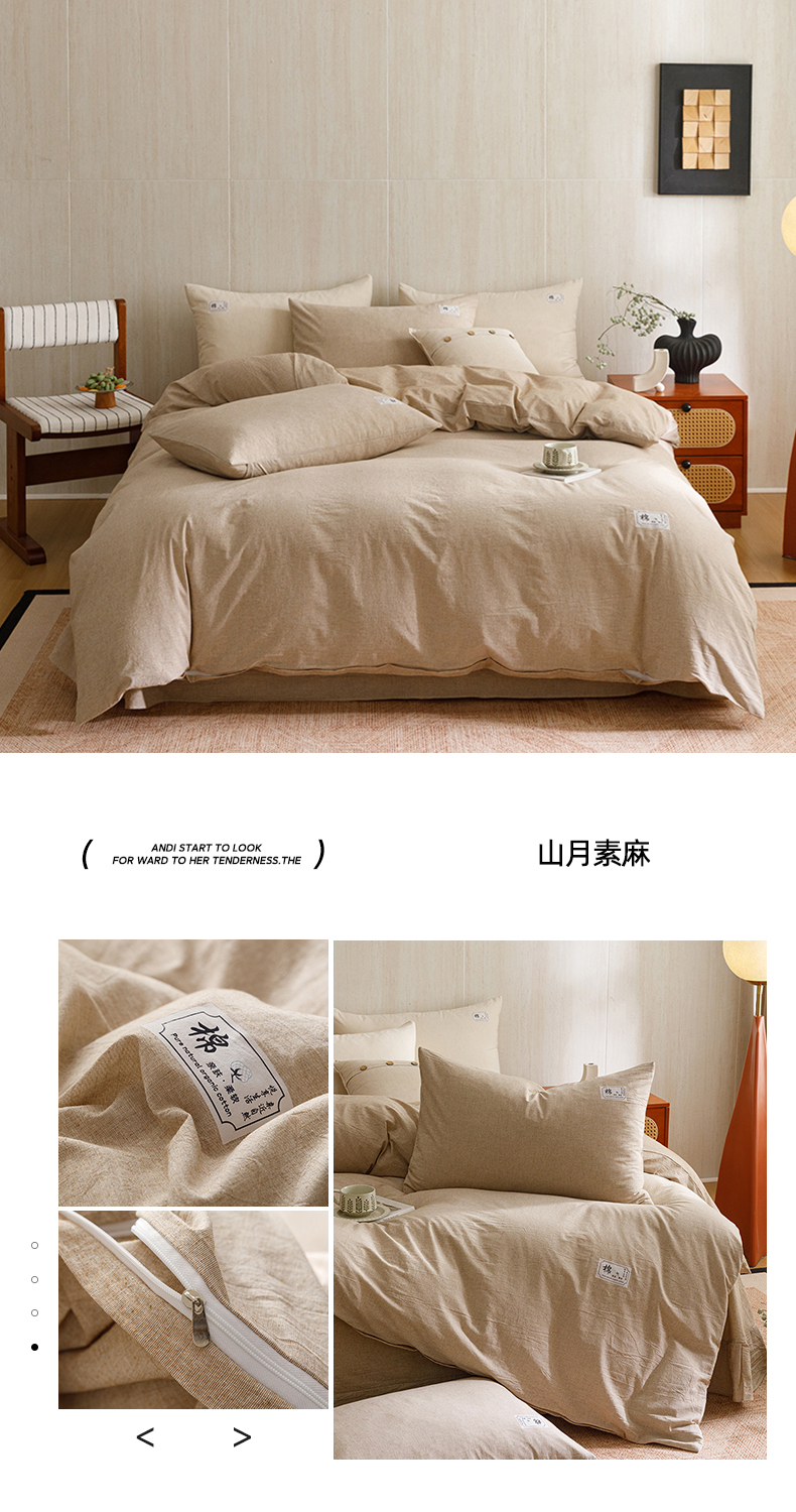 当前位置: 91家纺网 > 商品网购 > 床品套件 > 四件套 > 全棉普通四件套 > 悦然毛巾被 2026春夏新款A类全棉棉麻纯色四件套-山月素系列 山月素麻