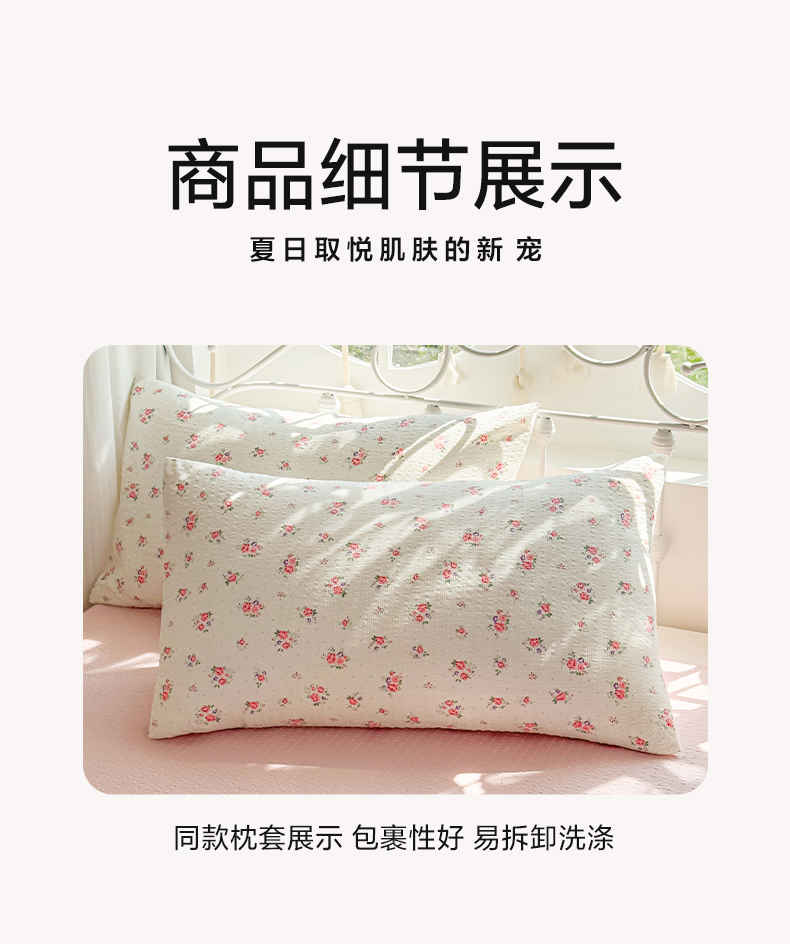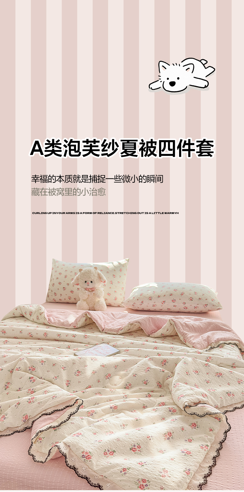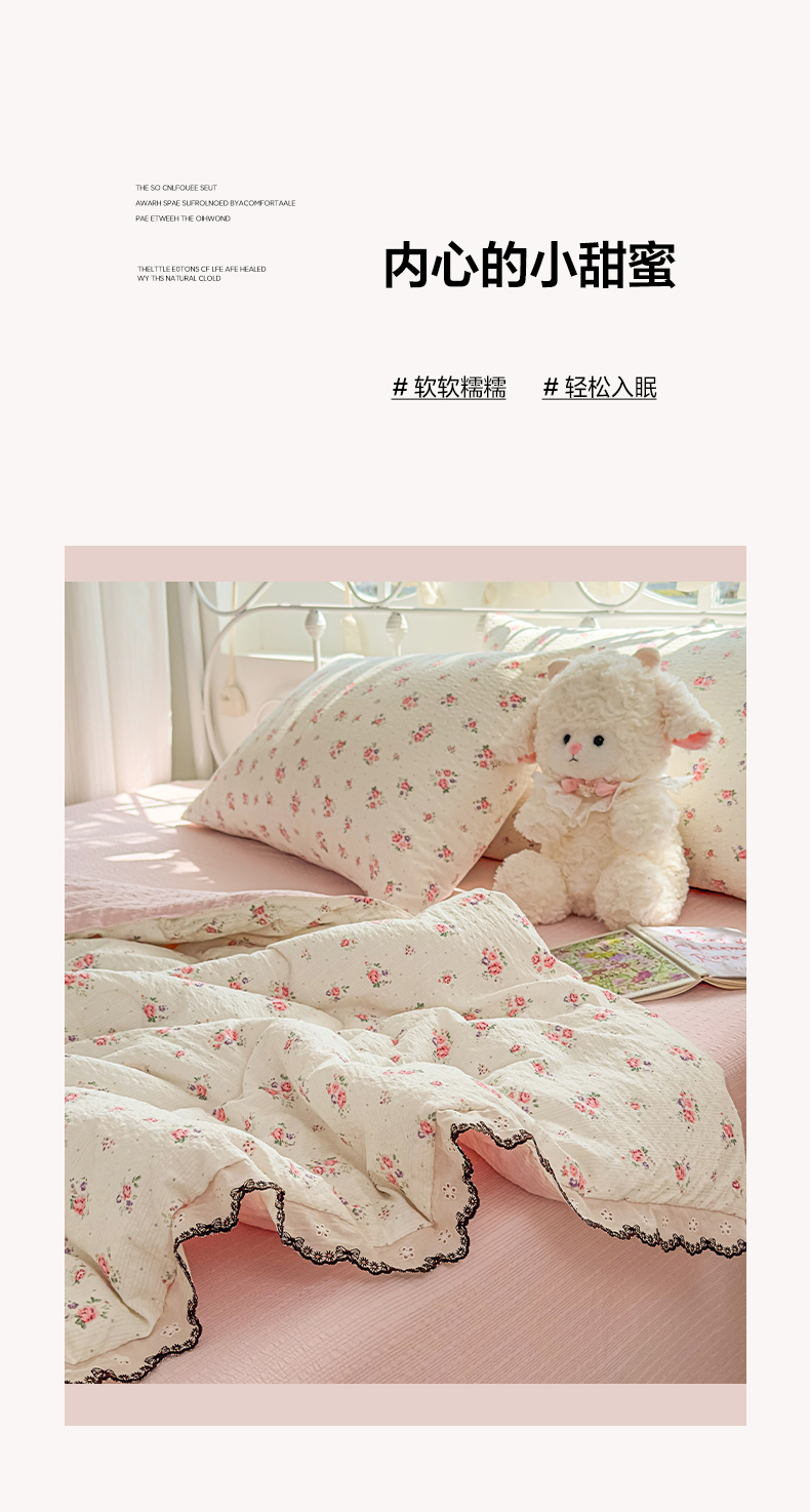 商品名称:眠势力 2026新款泡芙纱夏被四件套全棉花边空调被夏凉被薄被子 曲奇小熊