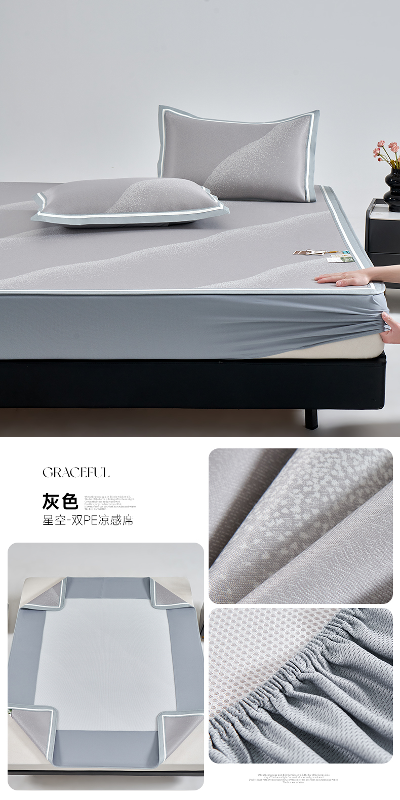 (总)小牛席业 2026新款星空凉感冰丝席席子凉席-床笠款,粉色,灰色,绿色