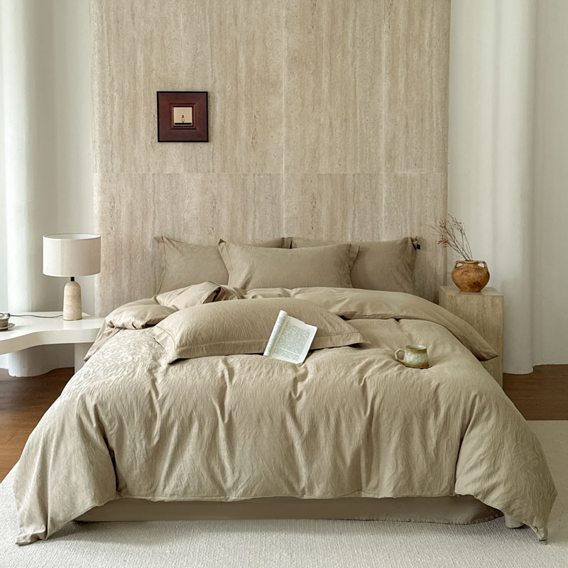 奈萝家纺 2026新款长绒棉纯棉水洗全棉浮雕提花四件套 米娅粉