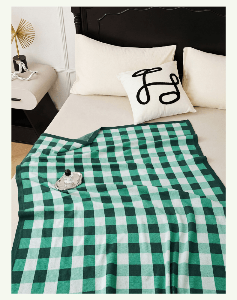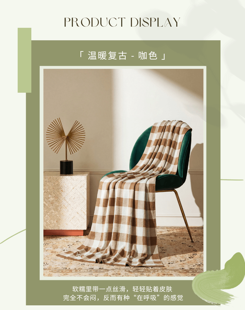(总)暖绵绵家纺 2026新款丝光棉格子盖毯-艾利欧,咖色,蓝色,绿色,麻灰,组合图