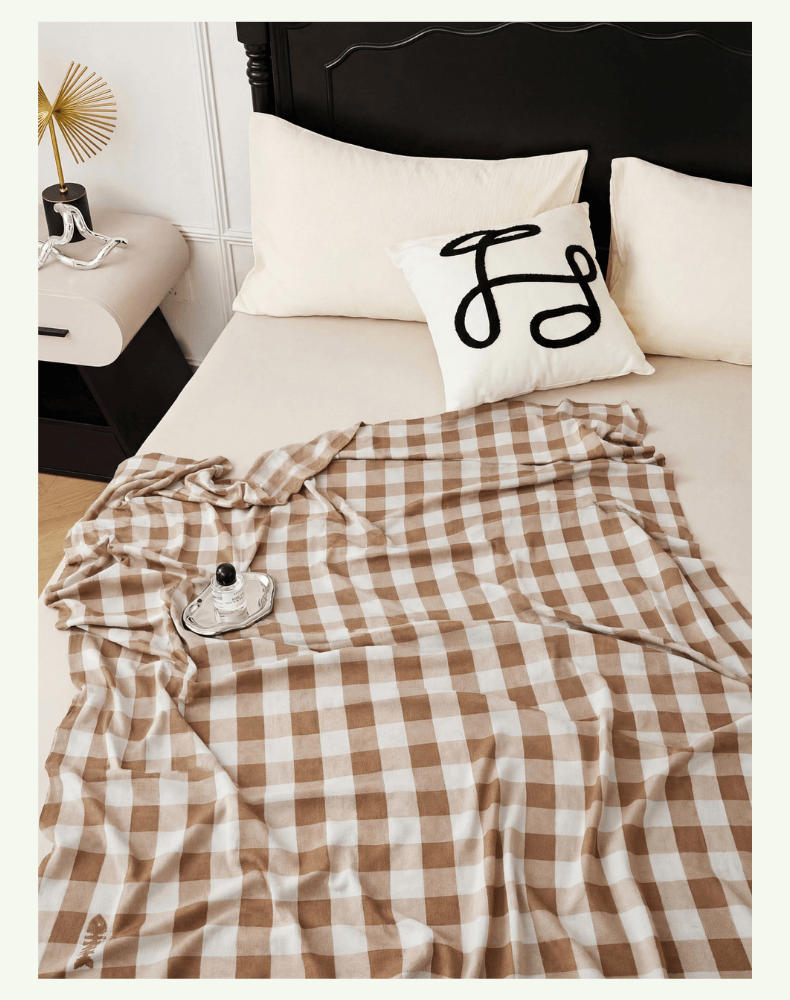 商品名称:暖绵绵家纺 2026新款丝光棉格子盖毯-艾利欧 咖色