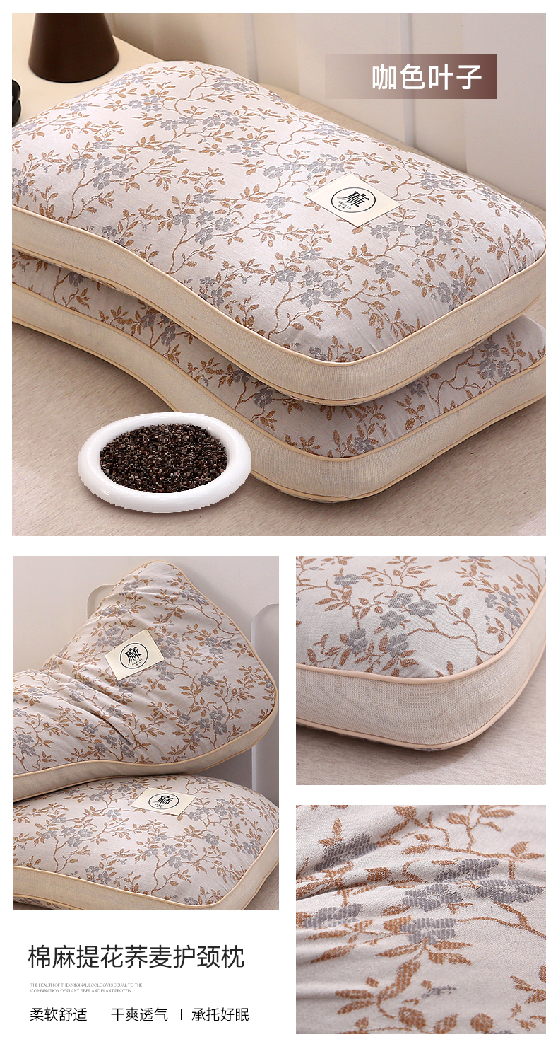商品名称:梦叶草 2026新款棉麻荞麦提花护颈枕 咖色叶子