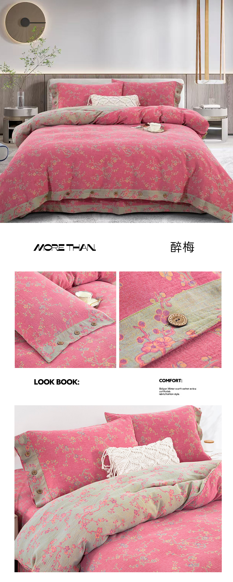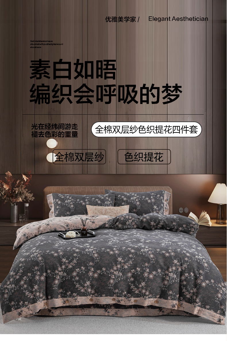 云天家纺 2026新款A类全棉纯棉色织提花双层纱纽扣款四件套 圣诞