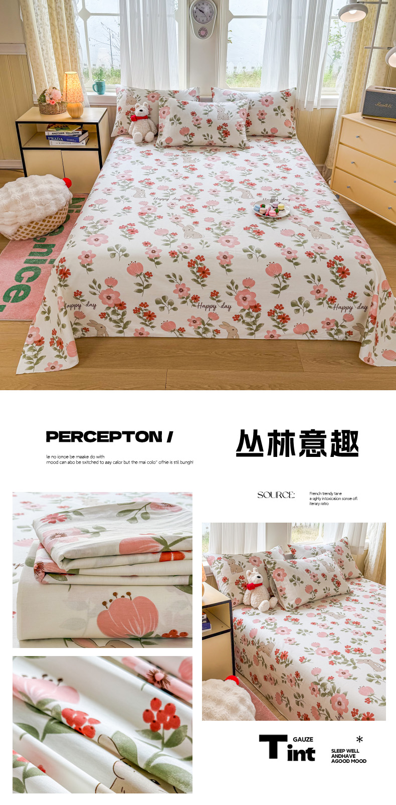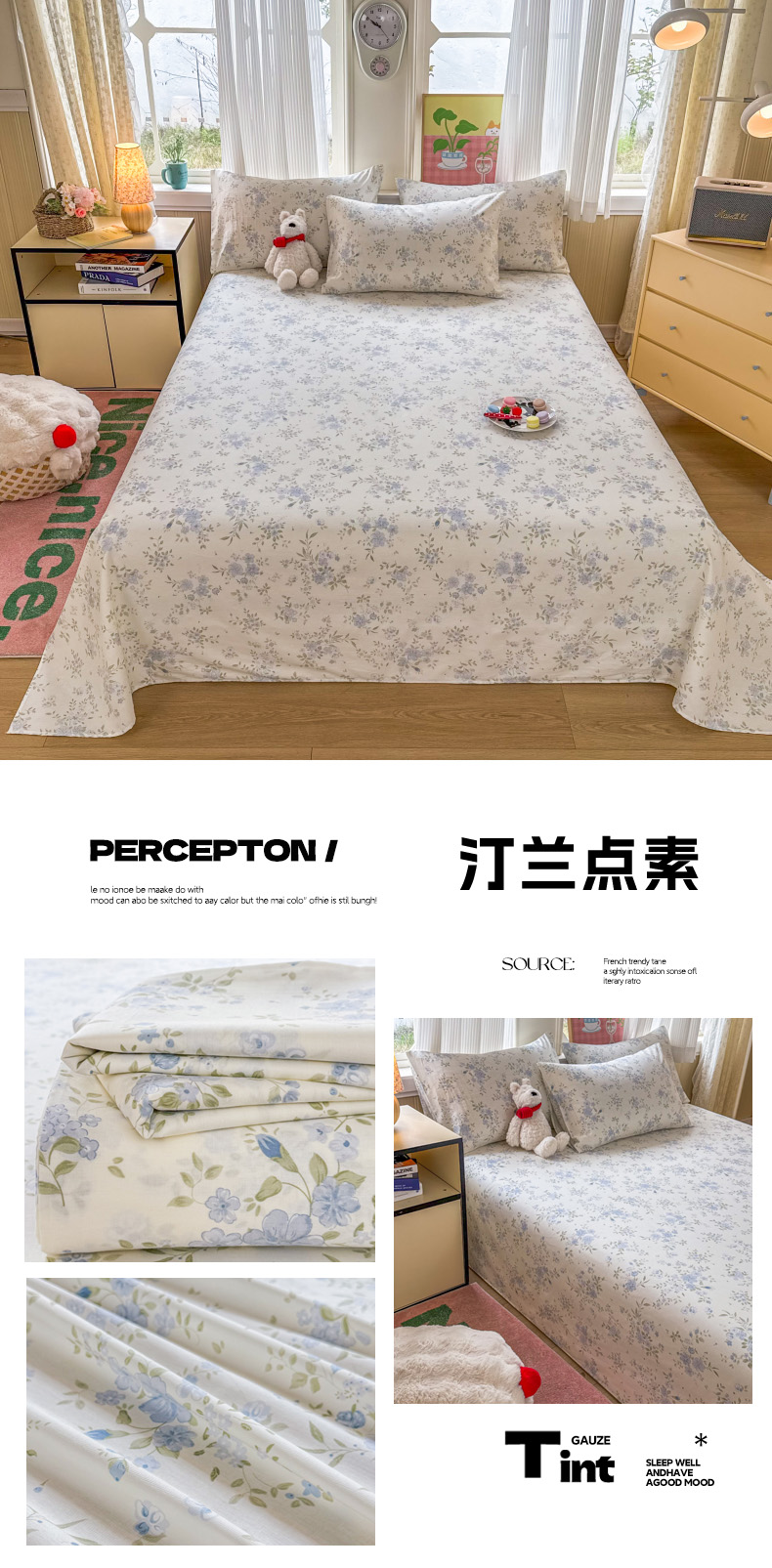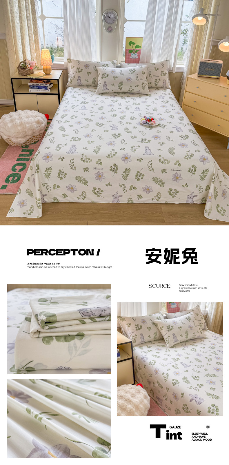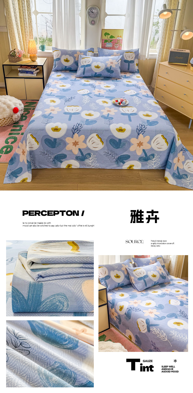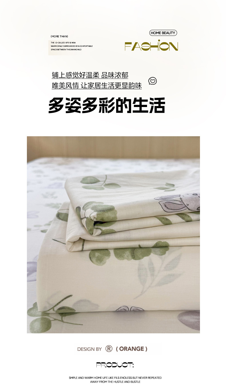 当前位置: 91家纺网 > 商品网购 > 床品套件 > 三件套 > 晨晨家纺 2026春夏新款小清新全棉纯棉印花床单三件套 晚风轻漫