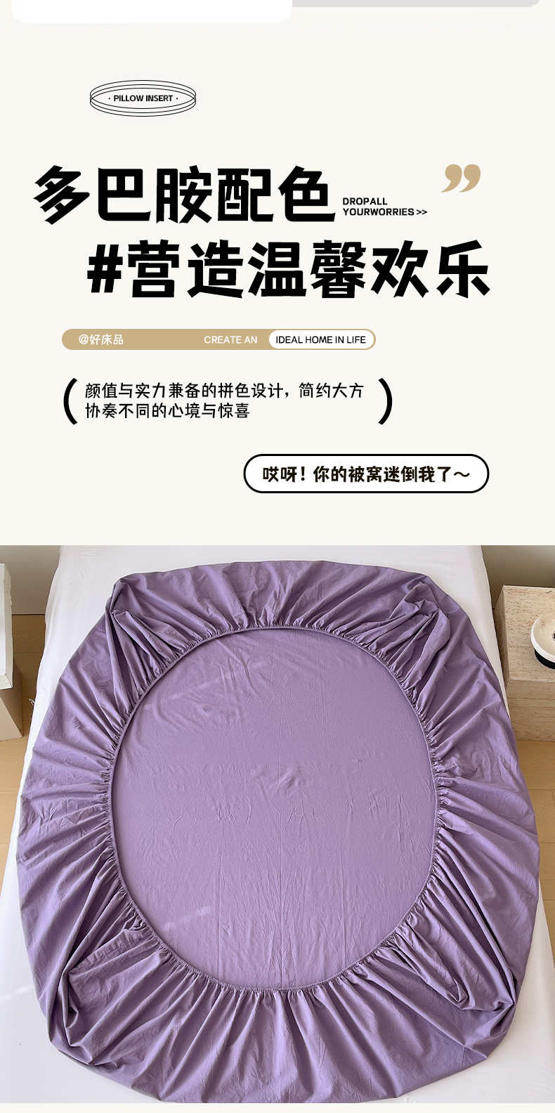 商品名称:春皖家纺 2026春夏新款双拼全棉纯棉水洗棉单床笠 床笠单件 水晶紫