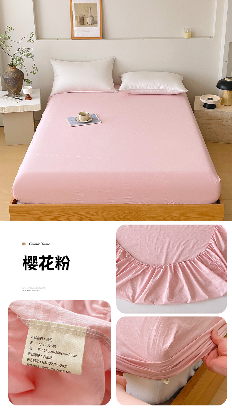 (总)春皖家纺 2026春夏新款双拼全棉纯棉水洗棉单床笠 床笠单件,可可红,慕斯棕,青草绿,水晶紫,素雅翠兰,素雅淡黄,素雅果绿,素雅幻蓝,素雅焦糖,素雅军绿,素雅卡其,素雅墨灰,素雅浅灰,素雅深黄,樱花粉