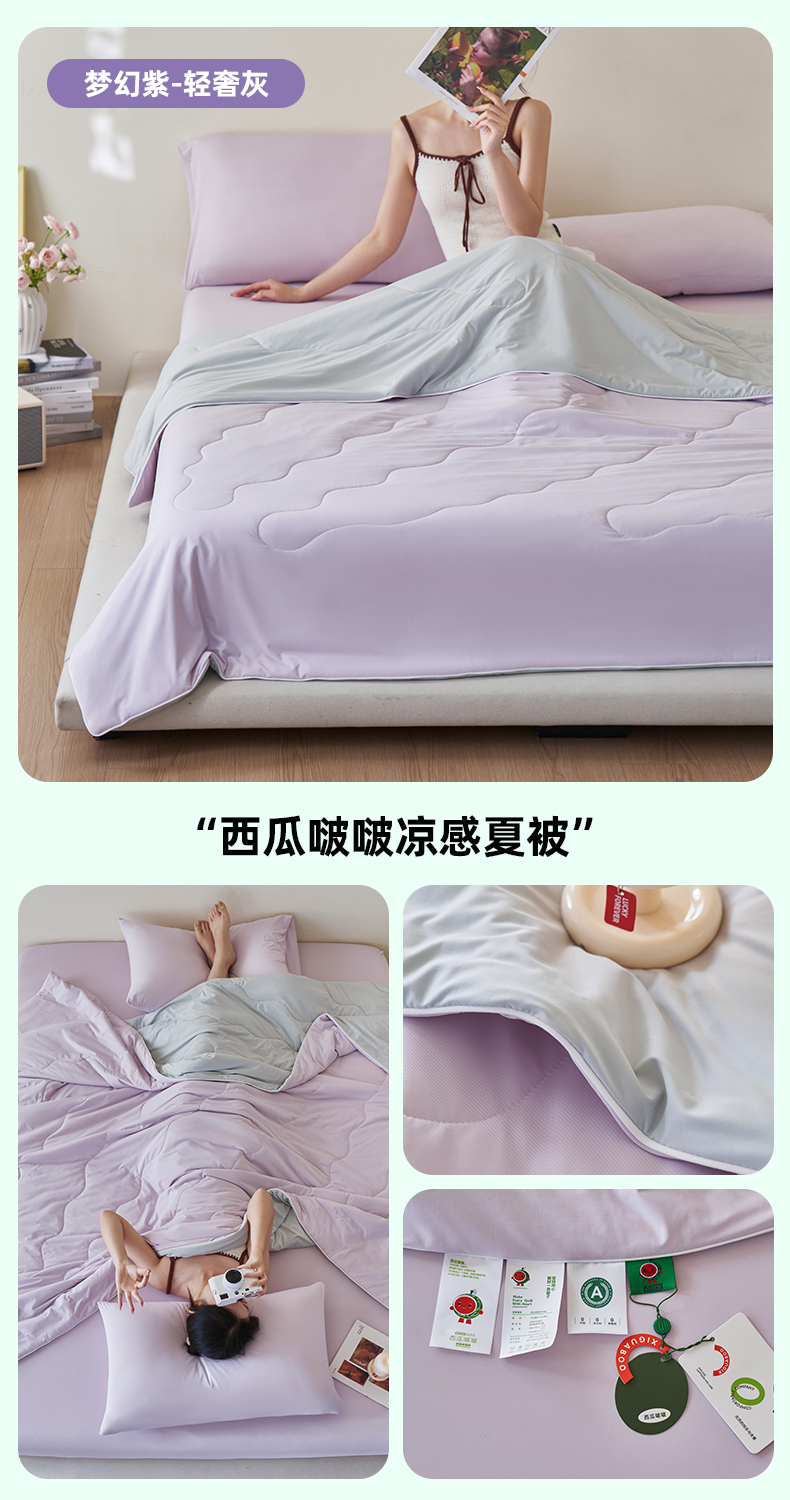 (总)亿梵家居 2025春夏新款A类母婴级啵啵西瓜被凉感被夏被夏凉被空调被,梦幻紫+轻奢灰,蜜桃粉+淡雅黄,天空蓝+轻奢灰,西瓜绿+青柠绿,星辰绿+海棠粉