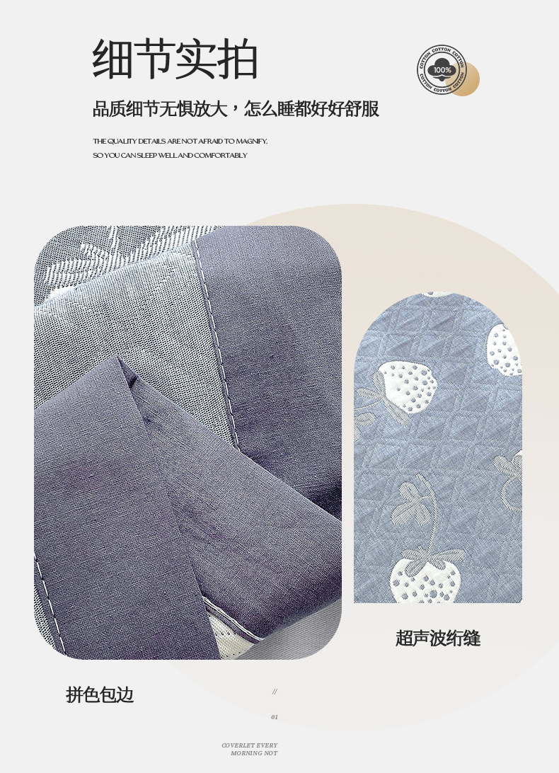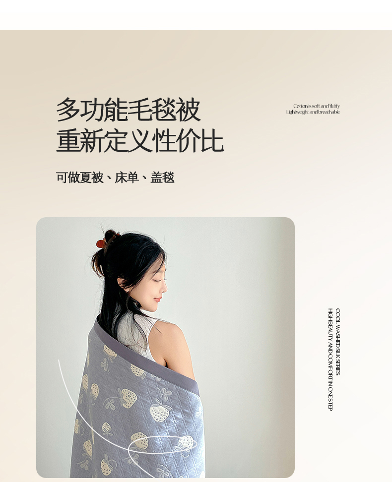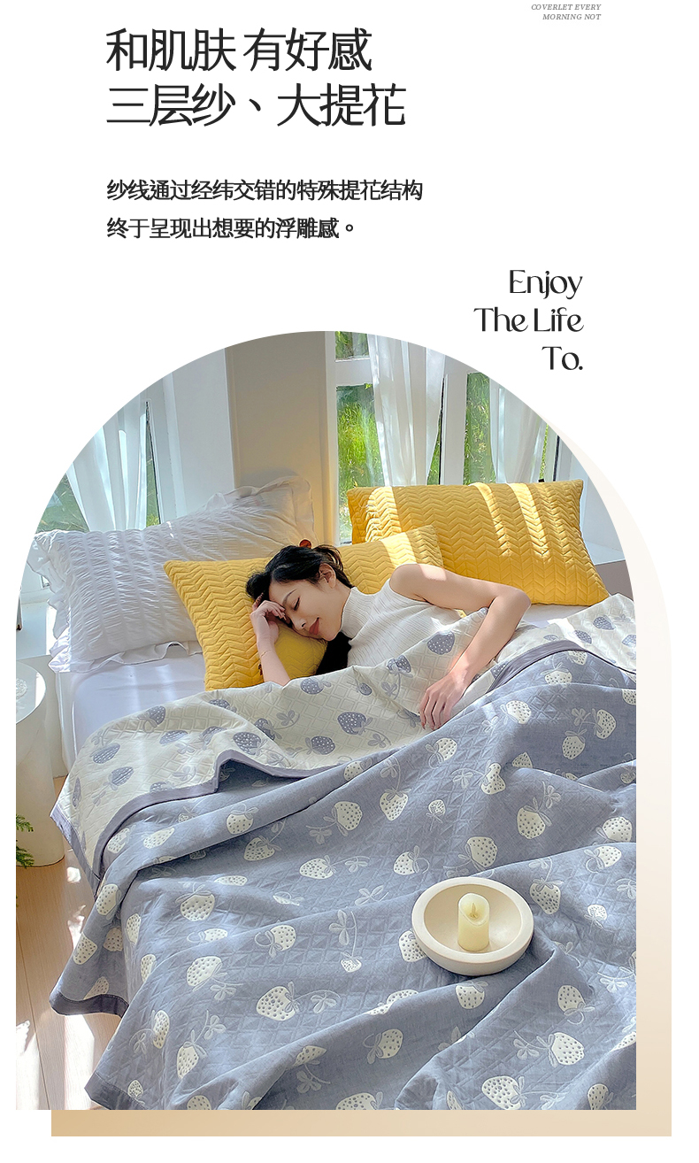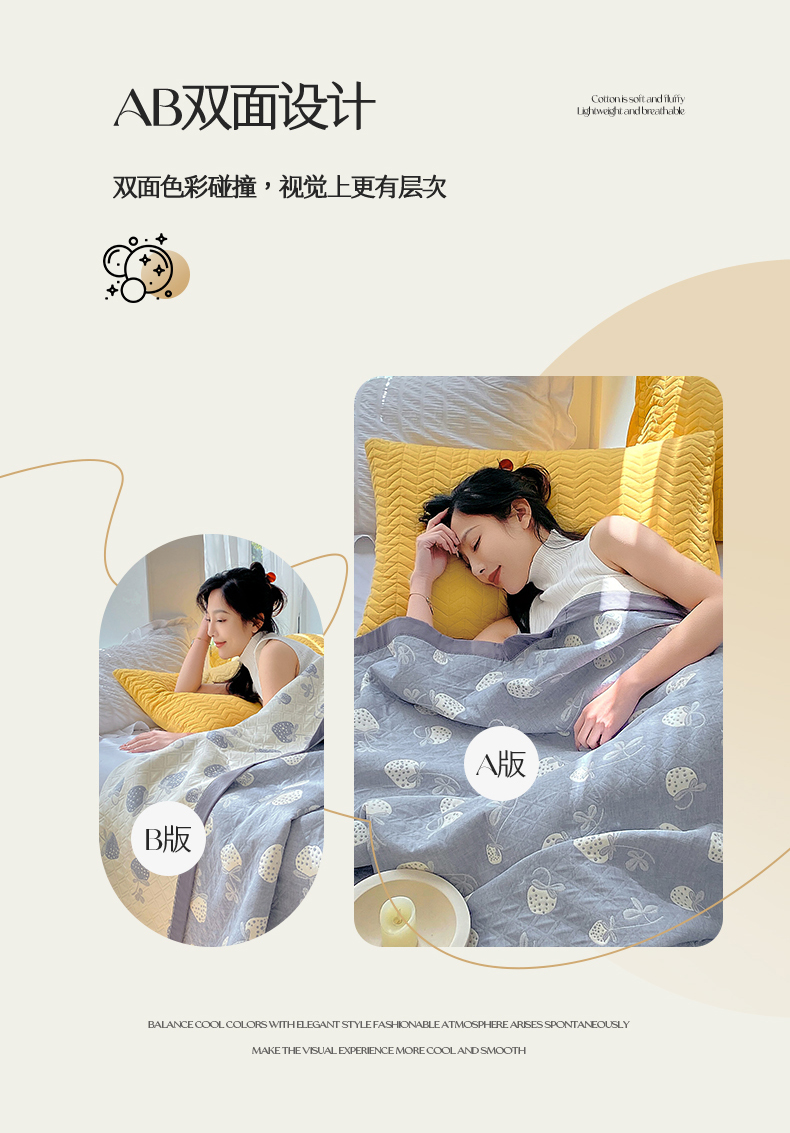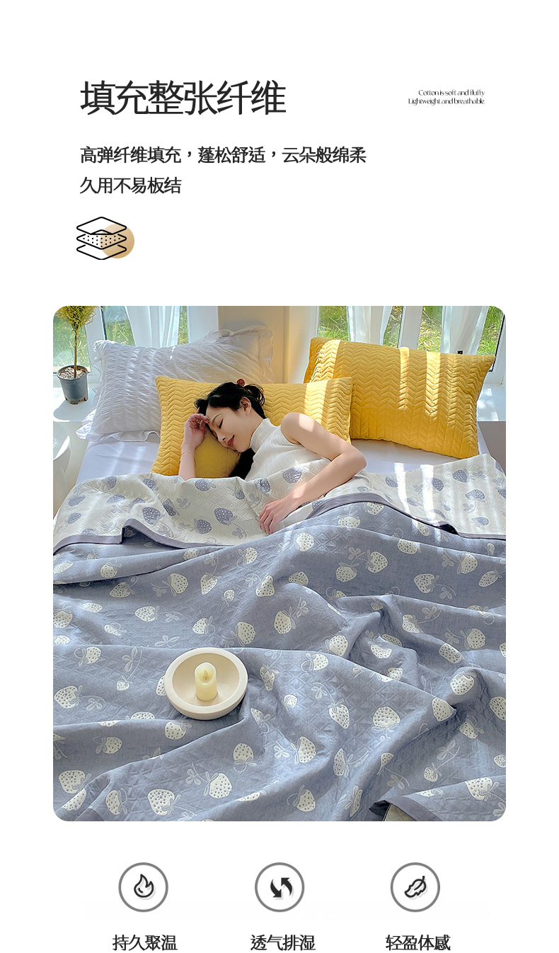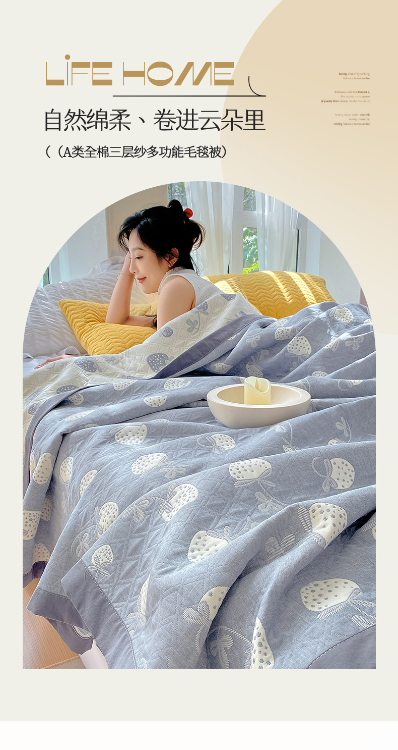 商品名称:云天家纺 2026新款A类全棉三层纱多功能毛巾被(盖毯床单夏被) 甜心草莓-蓝
