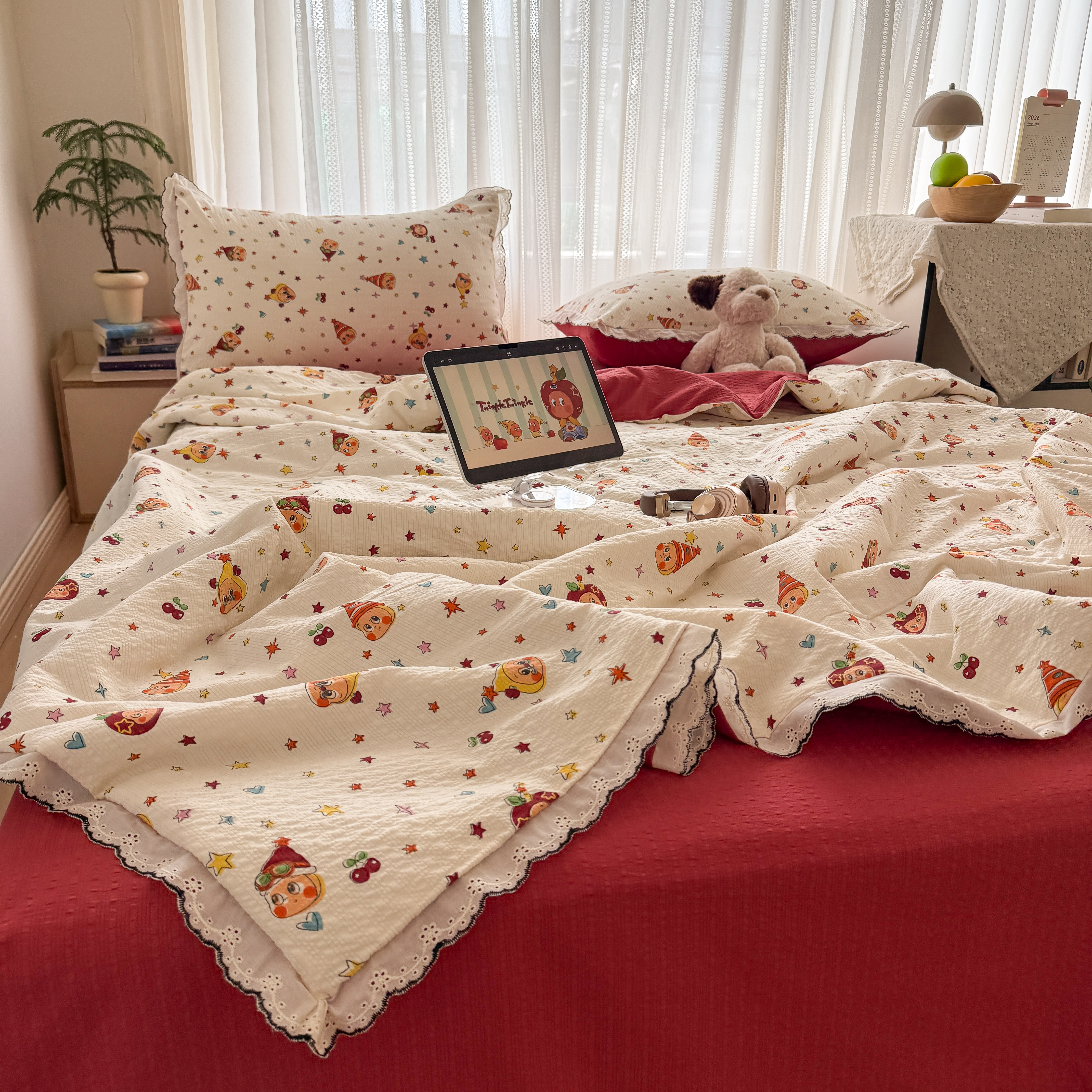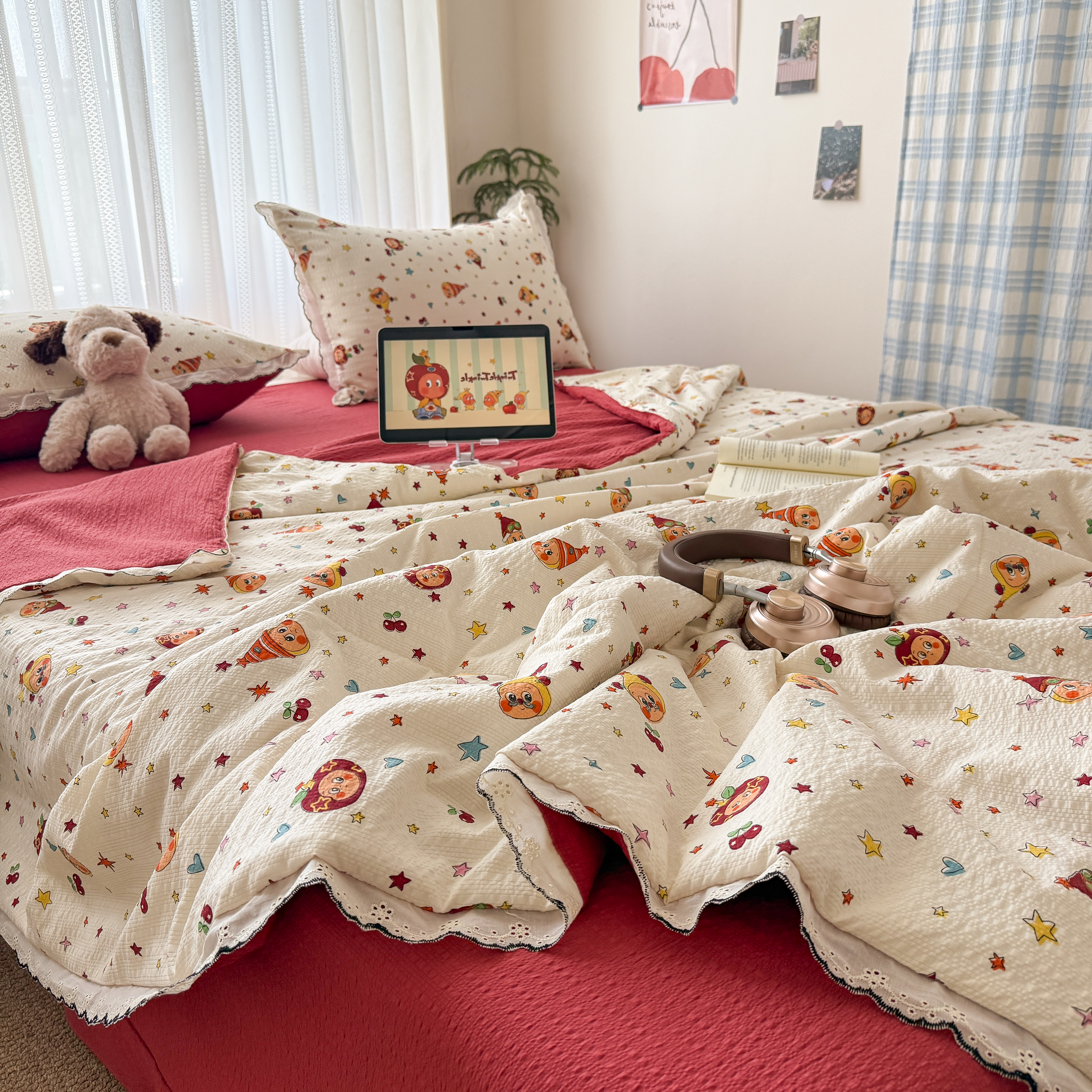 (总)2026新款泡芙纱床盖四件套,咖啡小猫,咖爱心,咖豹纹,小女孩,摇摇马,星愿,暖心,暖橘枝,梦境,梨花落,波点,甜甜兔,紫苏,花束,花花,蝶舞