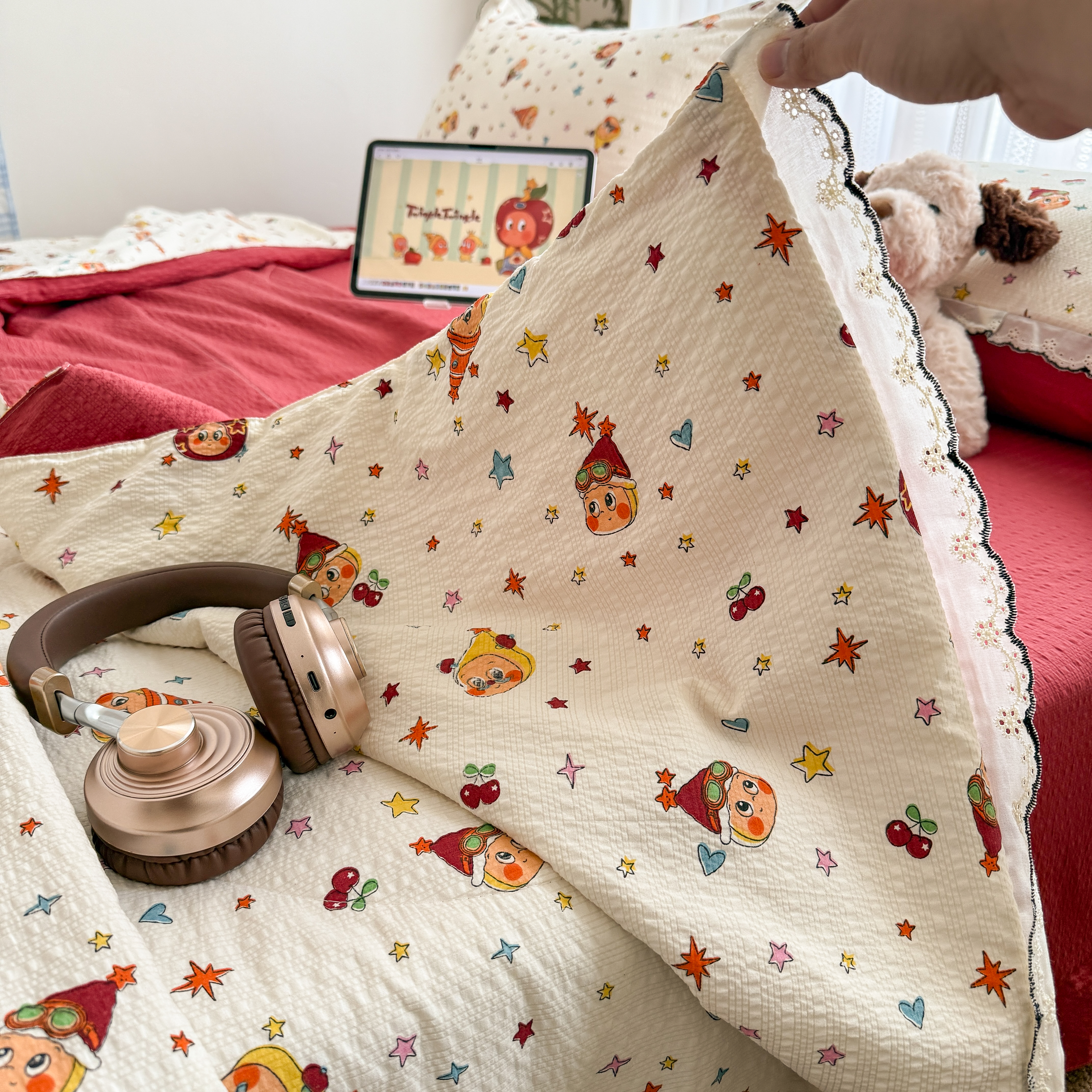 商品名称:欧尚 2026新款蕾丝花边夏被款四件套 旧街星星